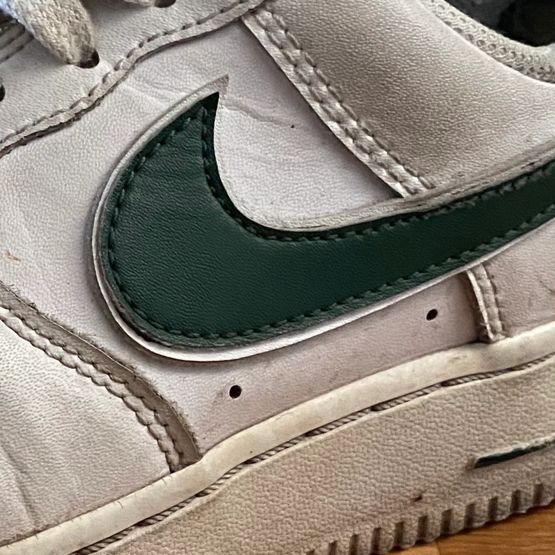 Något slitna airforces med grön Nike logga i storlek 38-39