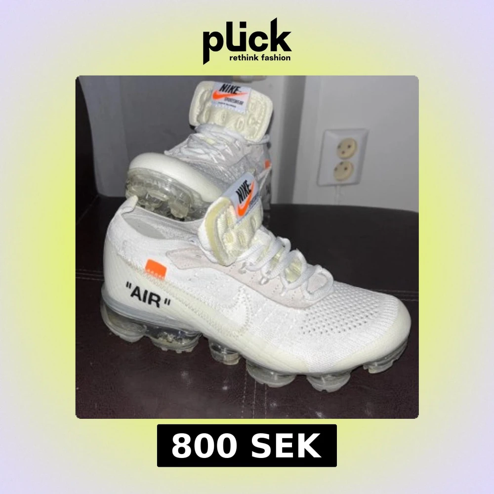 Säljer ett par Nike off white vapormax i storlek 37,5 men sitter som 38 använda runt 2 gånger nästan helt nya inga defekter. Hör av er vid fler funderingar