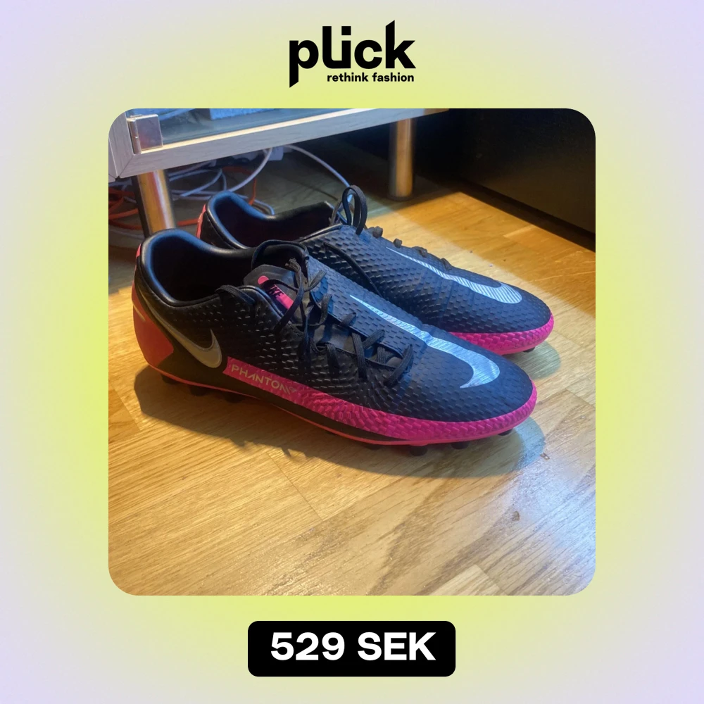Snygga Nike Phantom fotbollsskor i svart och rosa med snörning. Skorna har ett väldigt bra skick förutom en liten defekt på vänsra sula som man ser på bild 2, men det är inget märkvärdigt! Köpte skorna för ca 1500kr. Hör av er vid frågor och funderingar😃