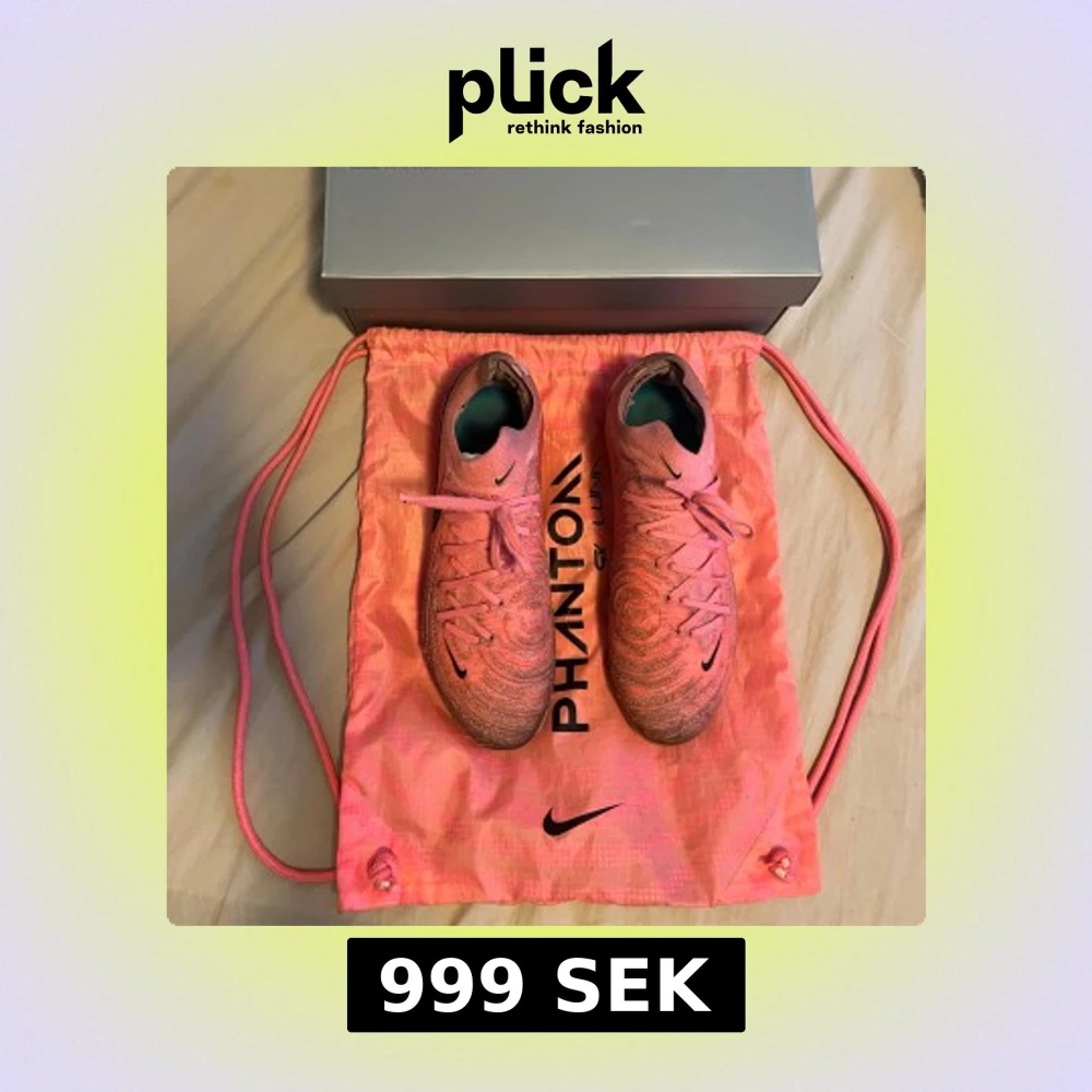 Säljer ett par Nike Phantom GT Elite fotbollsskor i rosa med svarta detaljer. Skorna har snörning och är designade för optimal bollkontroll. Levereras med matchande rosa påse och originalkartong. Perfekta för dig som vill sticka ut på planen!