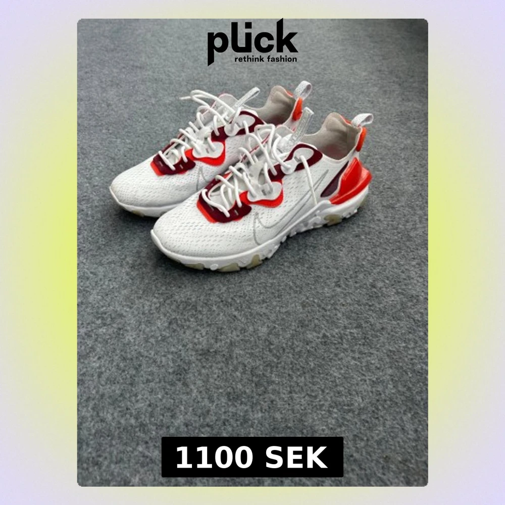 Nike React Element sneakers i vitt med röda och vinröda detaljer. Ovandel i mesh med synliga sömmar, vita snören och en chunky sula med React-dämpning. Snygg design med kontrasterande färgblock och genomskinliga partier på sidan.
