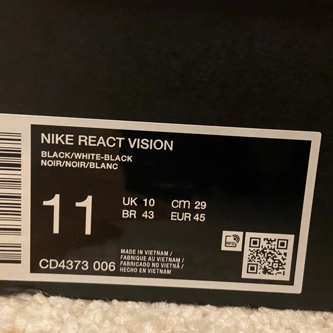 Nike React Vision sneakers i svart med vit sula och stora vita swoosh-detaljer. Ovandelen är i mesh med coola mönster och snörning. Sulan har en unik camo-liknande look och skon är riktigt bekväm för vardagsbruk. Perfekt för dig som gillar streetwear och snygg design.