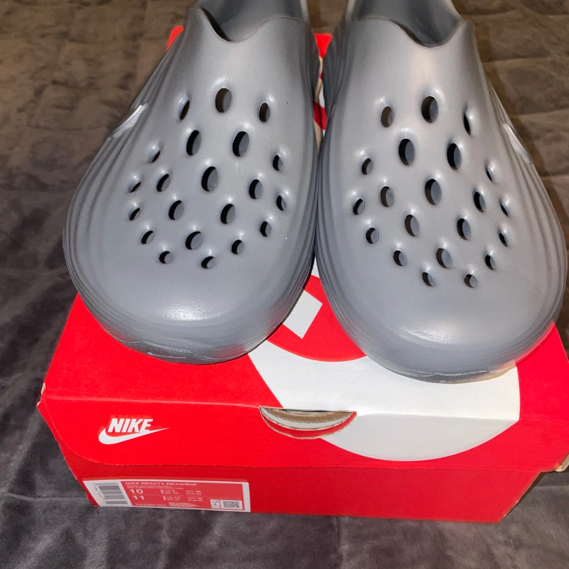 Säljer ett par Nike ReactX Rejuven i färgen ”smoke grey”. Skickas med shoeboxen. Kan tänka mig gå ner lite i pris vid snabb affär.