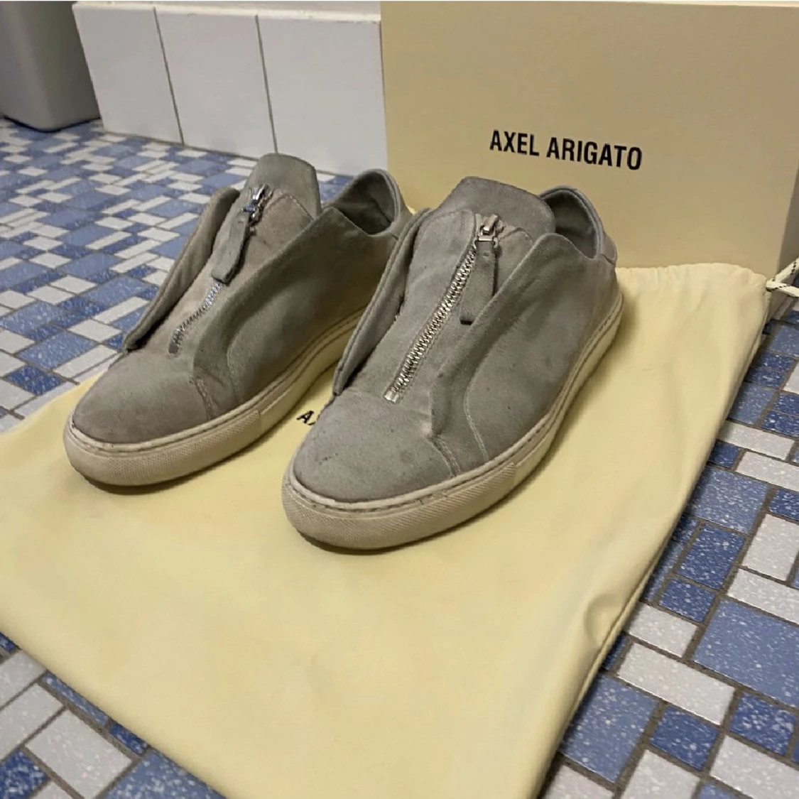 Ett par clean laceless arigato skor med dragkedja i mitten. Storlek 41
