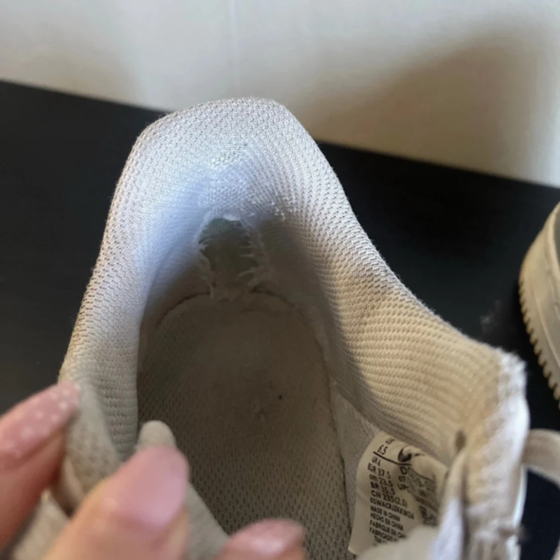 Lite skitiga och skav i hälen men funktionen är det inget fel på, går säkert att tvätta o få rena