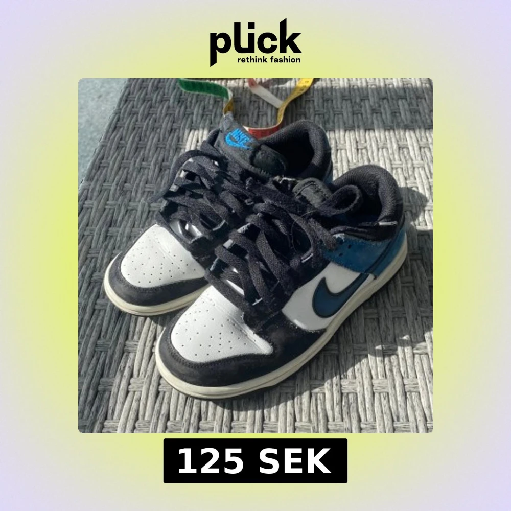 Snygga Nike Dunk sneakers i en klassisk färgkombination av svart, vit och blå. Skorna passar både till flickor och pojkar! Perfekta för barn med stil!