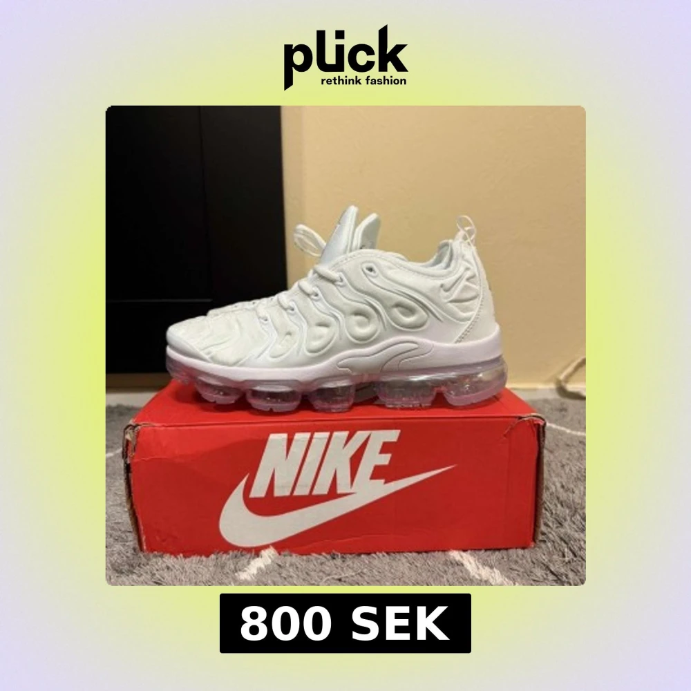 Nike Air Vapormax Plus i helvitt med futuristisk design och genomskinlig sula. Ovandel i syntetmaterial med vågiga detaljer och snörning. Sulan har synliga luftbubblor för maxad komfort och cool look. Perfekta för dig som vill sticka ut med stilrena sneakers.