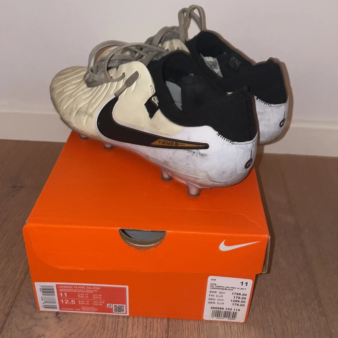 Jag säljer mina Nike tiempos som är aningen för stora för mig. Jag har använt skorna i cirka 2-3 månader så sicket på skorna skulle jag säga ligger på en 7,5/10. Skon är väldigt bekväm och mjukare än många andra fotbollsskor. Skon passar för personer med hyfsat bred fot samt till dig som tycker om ”bekväma fotbollsskor”. Nypris ligger 1800 kr som ni kan se i sista bilden.