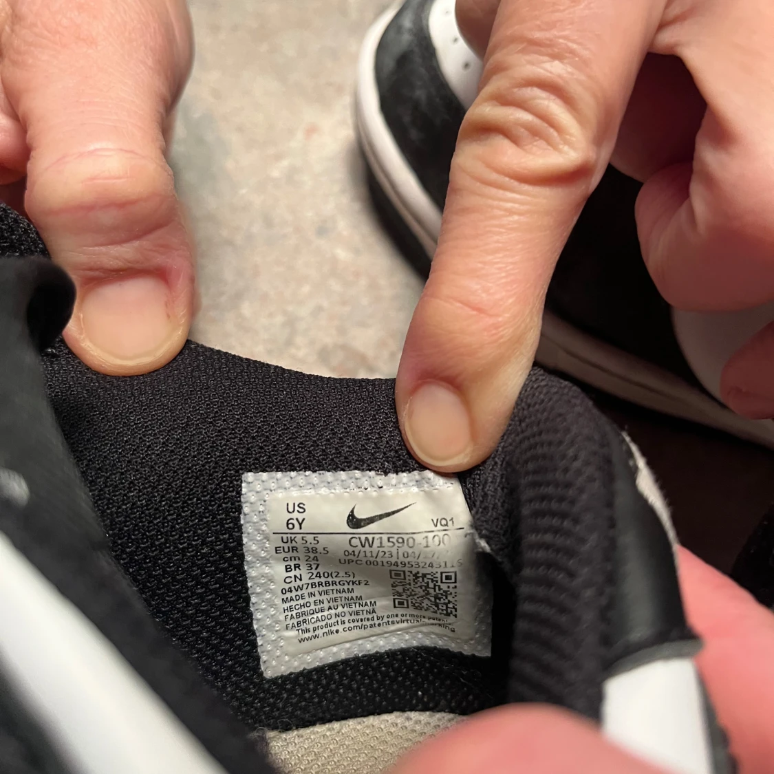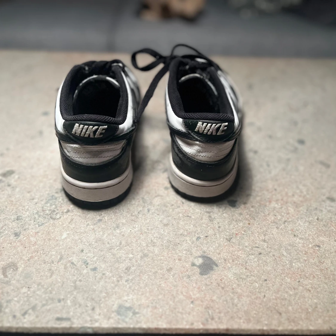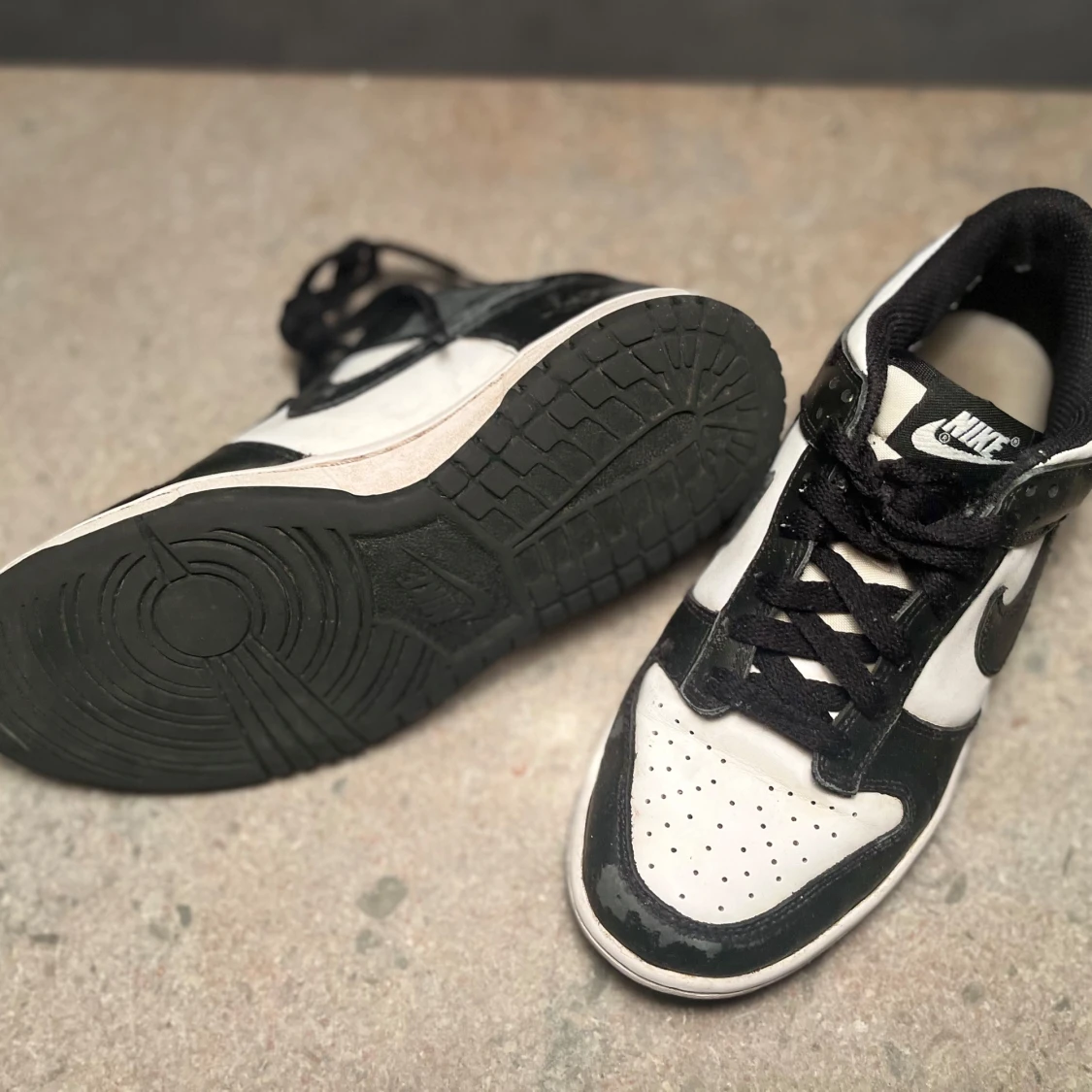 Säljer ett par svartvita Nike Dunk Low i storlek EU 38.5 (US 6Y). Skorna har en klassisk låg profil med perforerad tå och signatur Nike-logotyp på sidan. Perfekta för vardagsbruk eller streetwear-stil. Skick: Begagnat skick. Nypris: 1 100 SEK