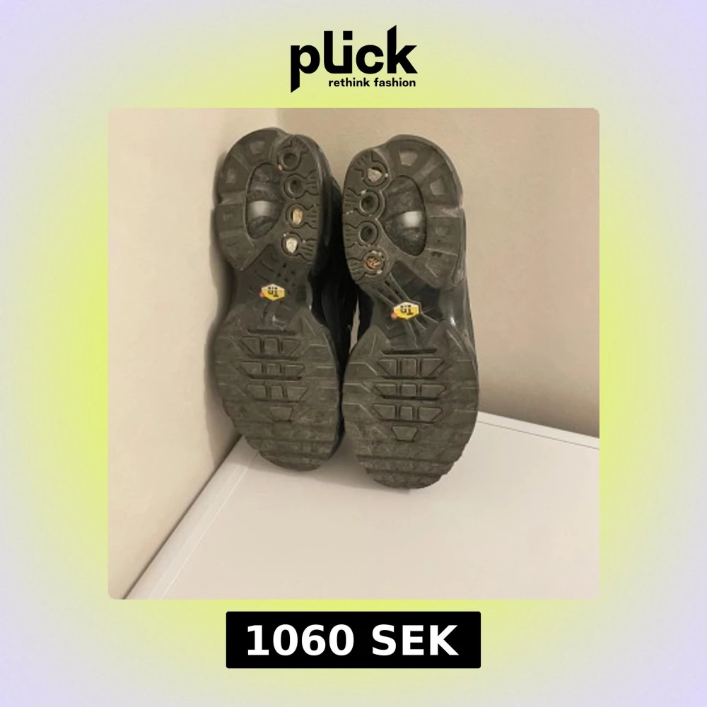 Svarta Nike Air Max TN sneakers med mesh- och syntetöverdel, ikoniska vågformade detaljer och synlig Air Max-dämpning i sulan. Snyggt helsvart utseende med svart Swoosh och snörning. Perfekta för dig som gillar streetwear och sportig stil. Säljer pågrund av köpte i fel storlek alltså den är mindre än mig och använd Som MAX 5 gånger sedan köpet du får även med paketet