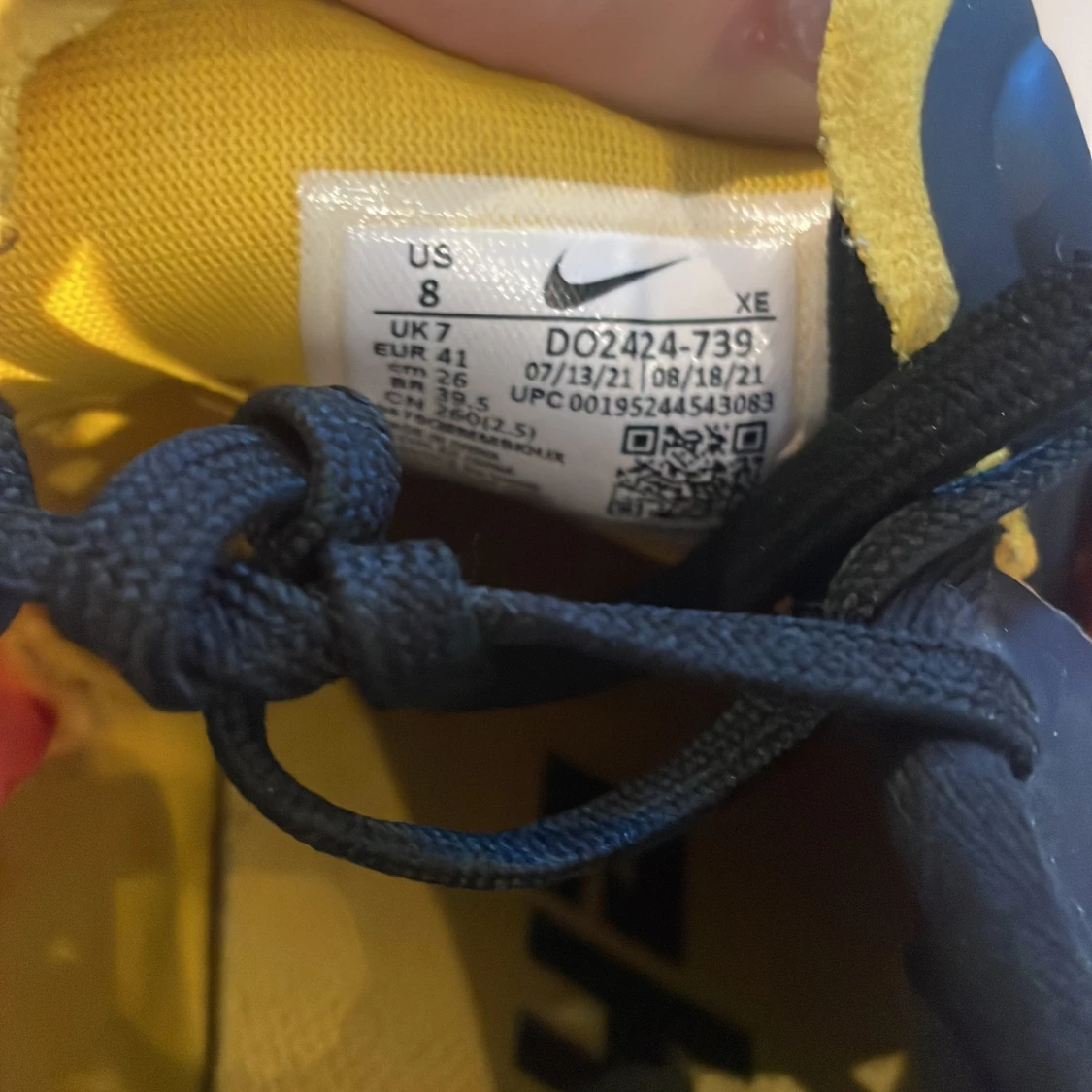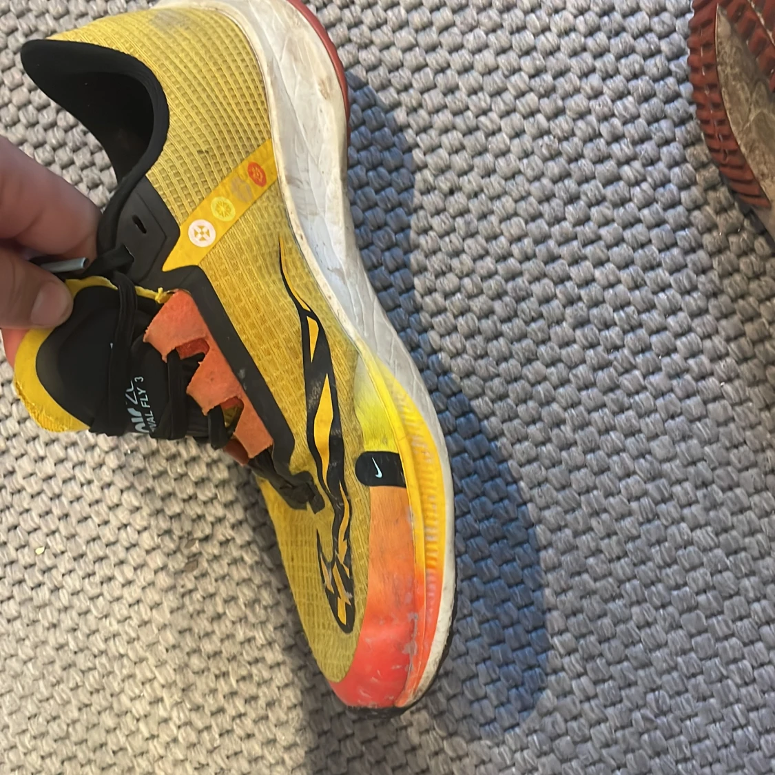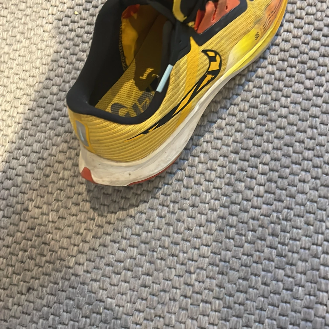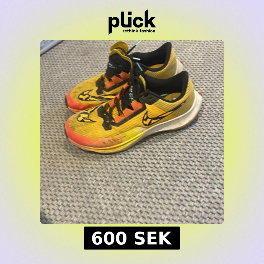 Nike löparskor i en riktigt fet gul och orange färg med svarta detaljer och snörning. Ovandelen är i mesh-liknande syntetmaterial för bra andning. Snygg svart swoosh på sidan och cool design på sulan. Perfekta för dig som vill sticka ut på löprundan.