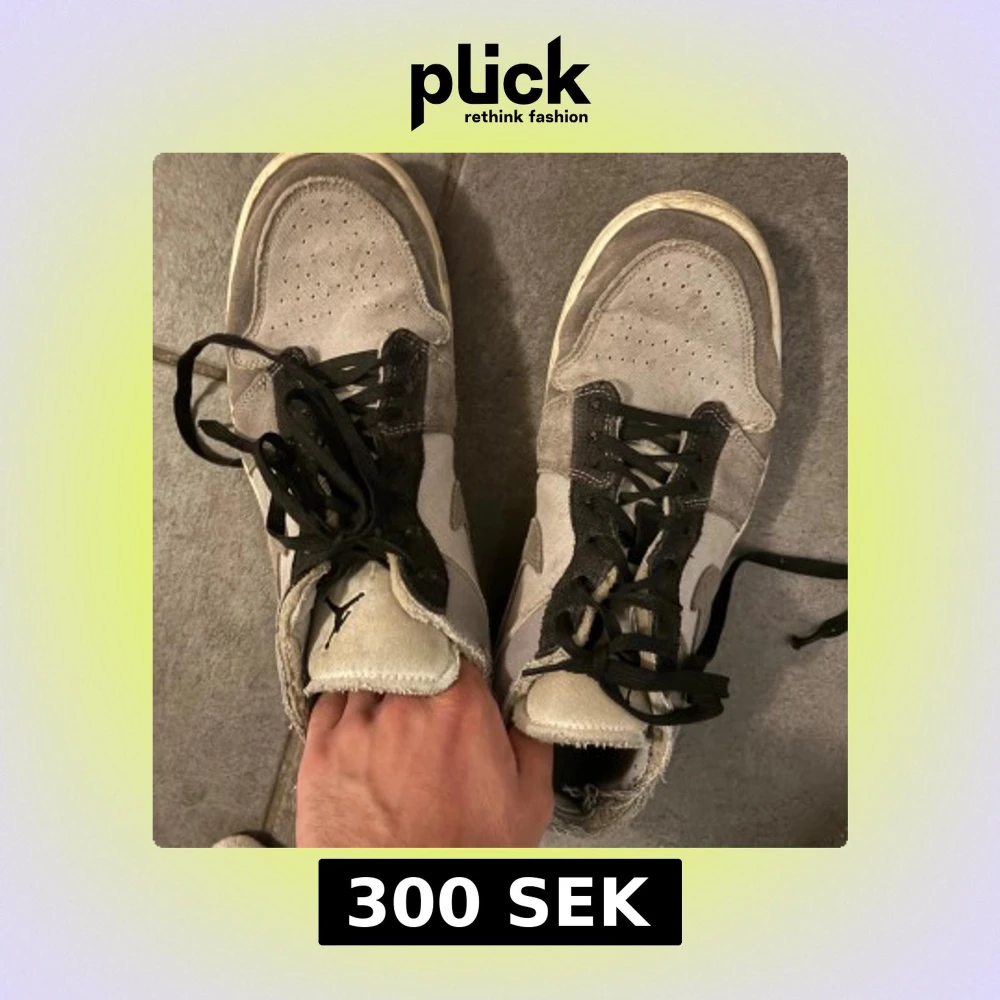 Säljer ett par Nike Air Jordan 1 Low i grått och svart med svarta. Skorna är mycket smutsiga, men går att åtgärda.