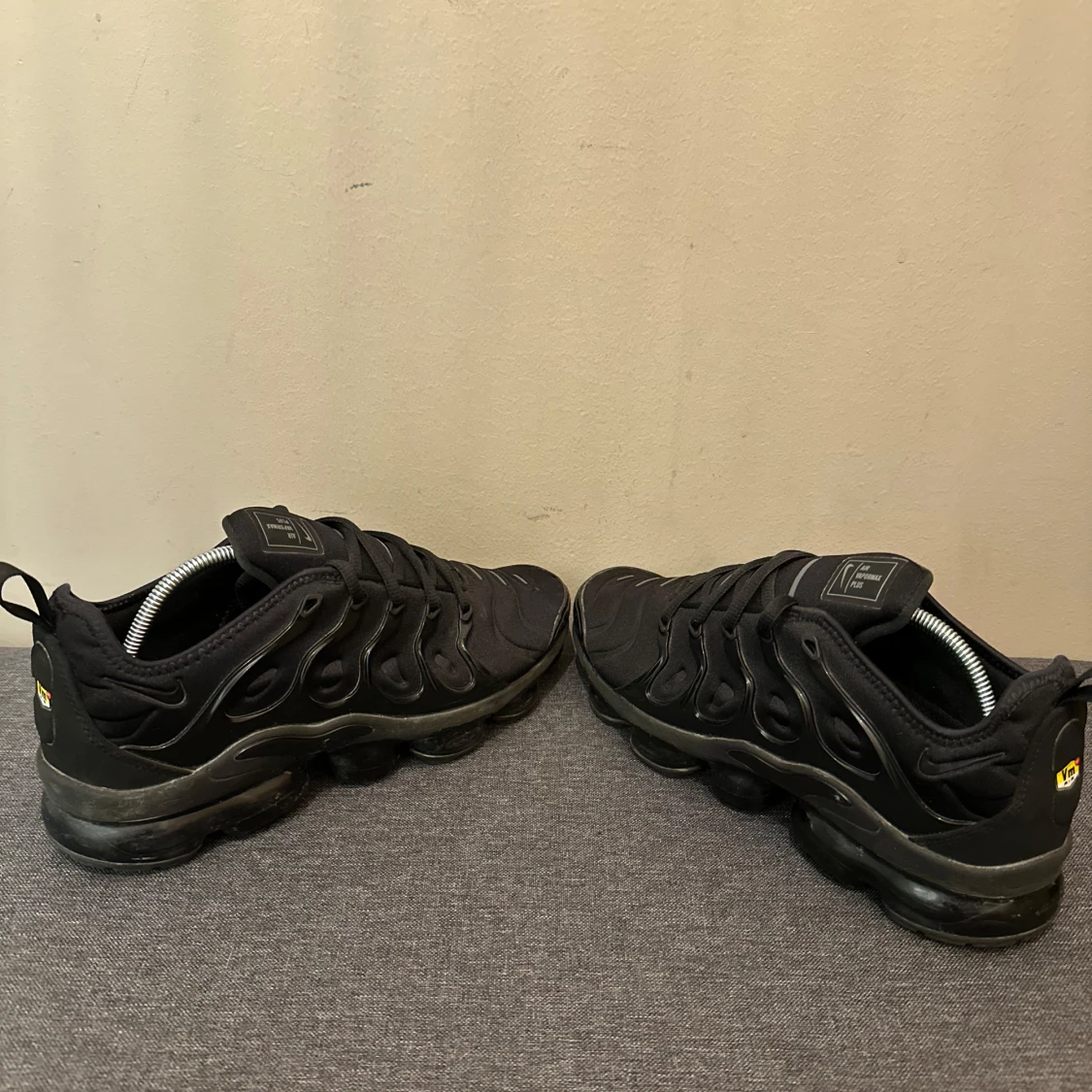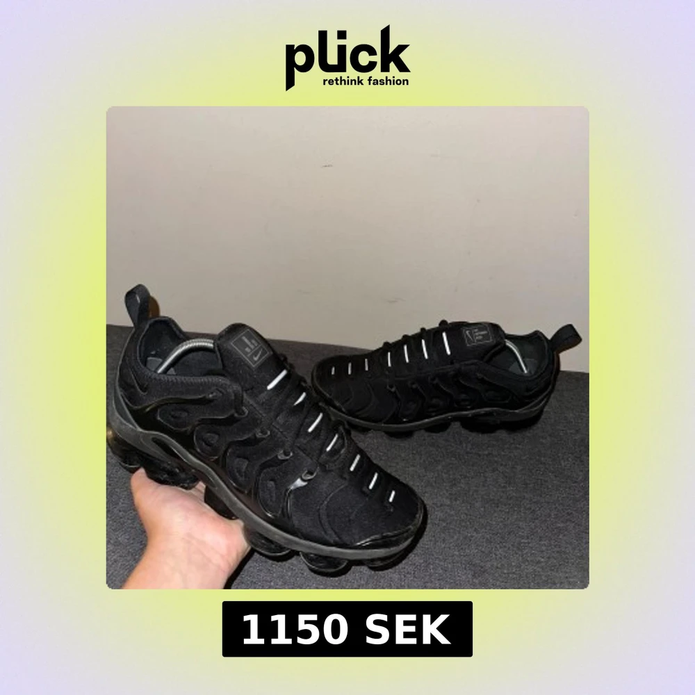 Nike Vapormax Plus i helsvart med futuristisk design och synlig bubbelsula. Ovandel i syntet och textil med svarta detaljer och reflekterande inslag på snörningen. Skorna har en chunky platt sula och dragflik bak för enkel påtagning. Perfekta för dig som gillar streetwear. (KVITTO FRÅN JD SPORTS FINNS MED).