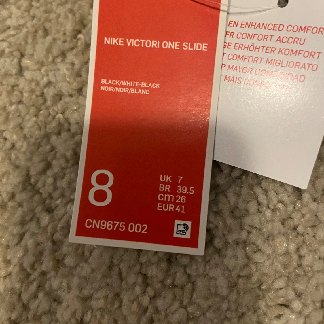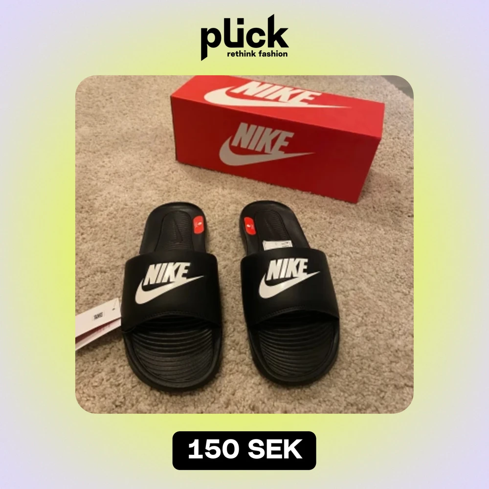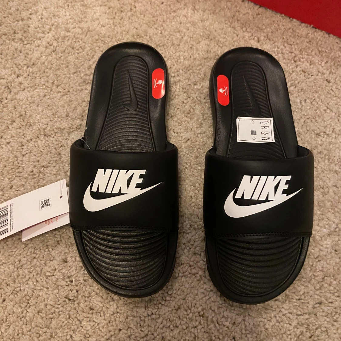 Svarta Nike Victori One Slide tofflor. Helt oanvända! nypris ligger på 379kr. För fler frågor eller bilder skriv🙌