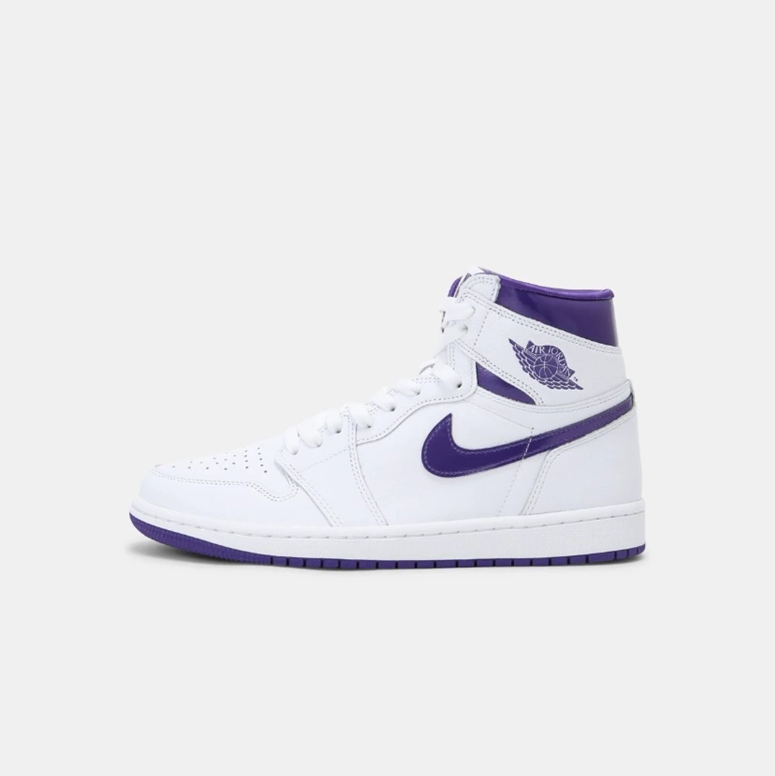 Säljer dessa höga air Jordan 1 sneakers i färgen vit och lila. Helt nyköpta, ligger i kartong och aldrig använt! Slut på hemsidan. Storlek 38