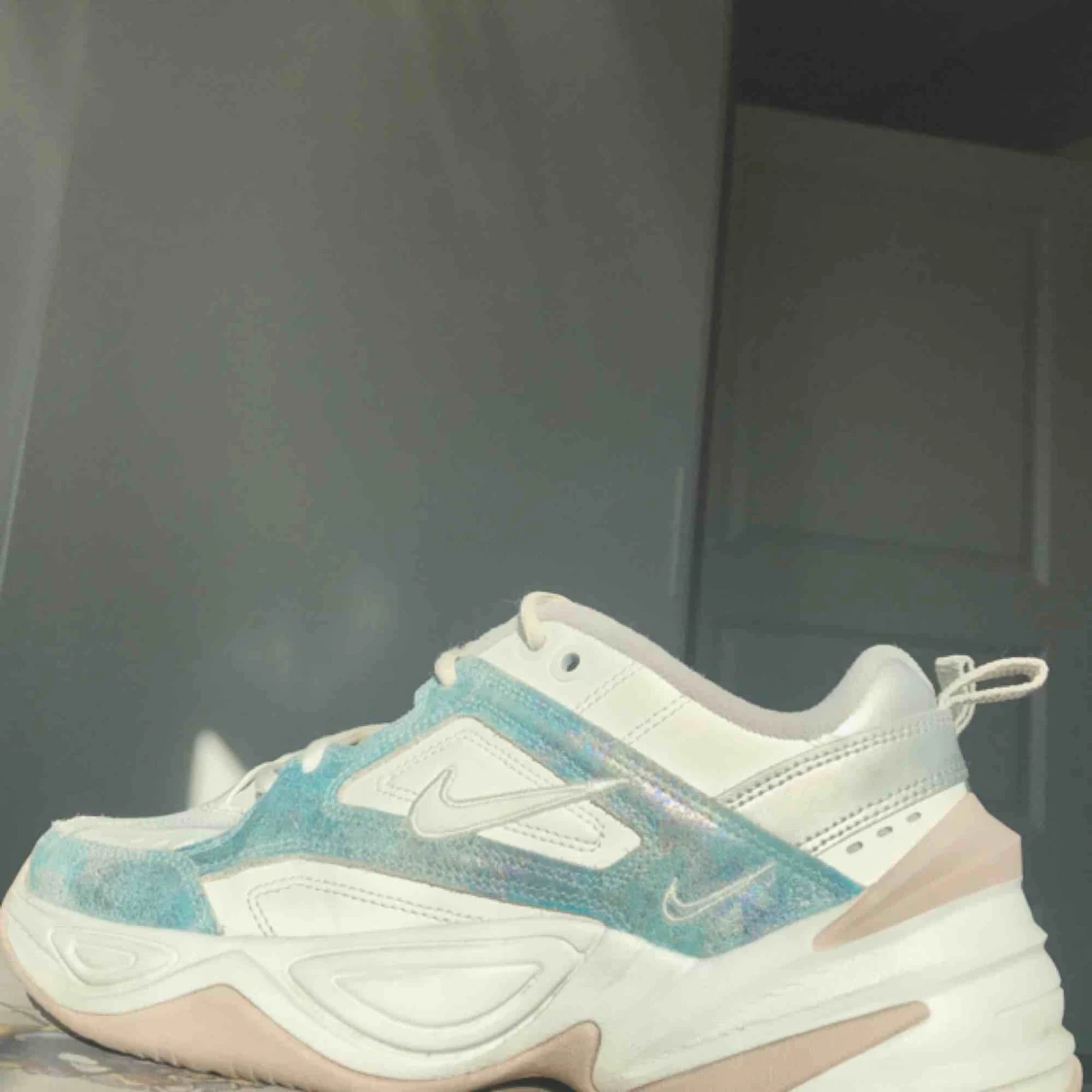 Säljer dessa sjukt snygga Nike mk2 tekno. Dem är så fina men eftersom jag har ett par andra i samma modell användes dessa aldrig. Använda fåtal gånger.