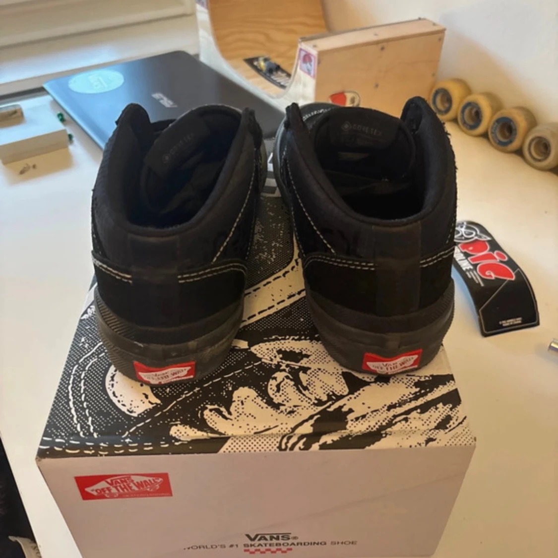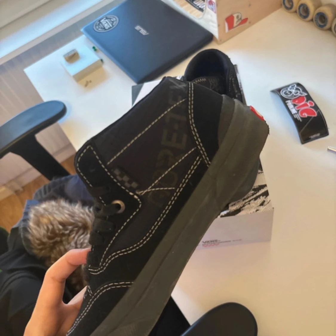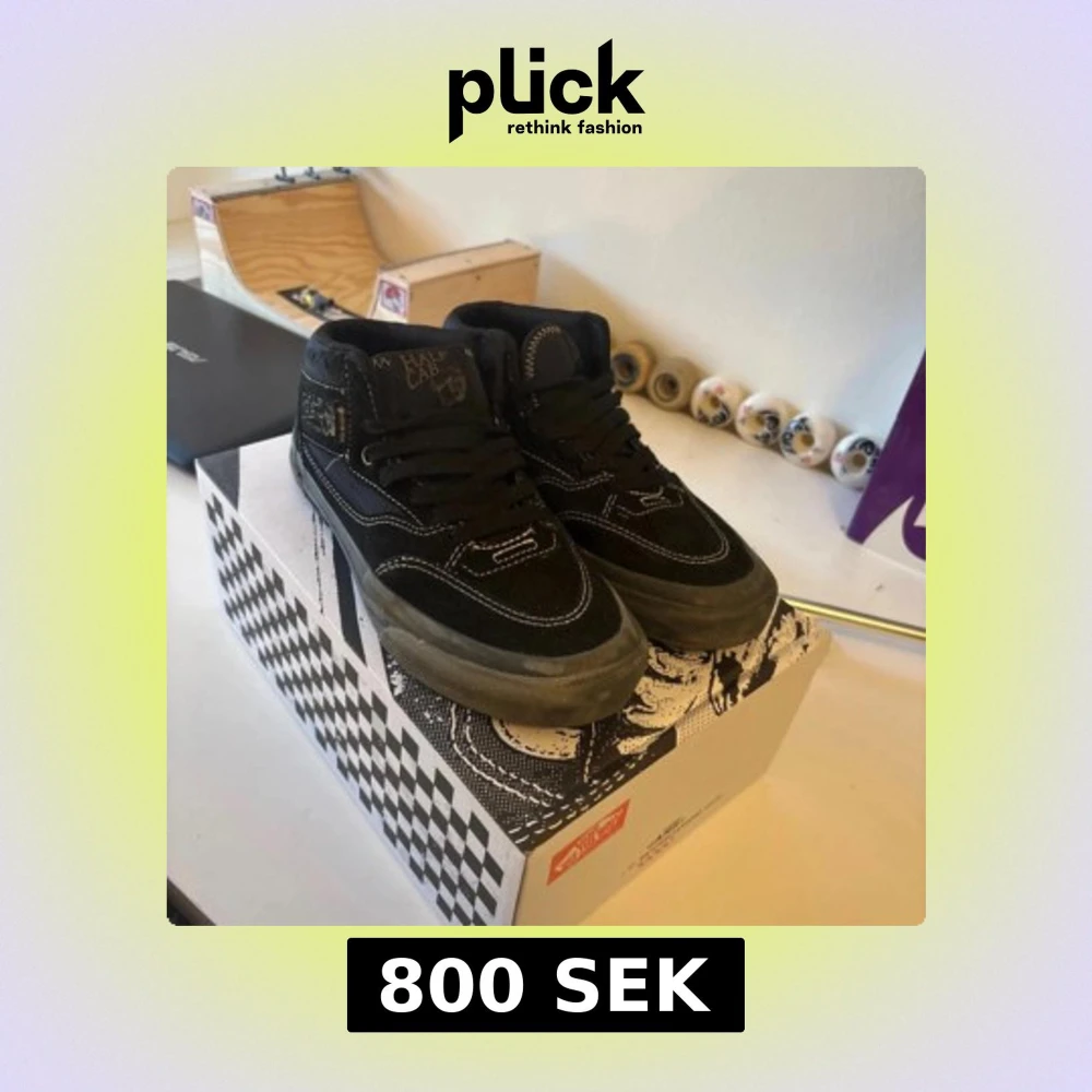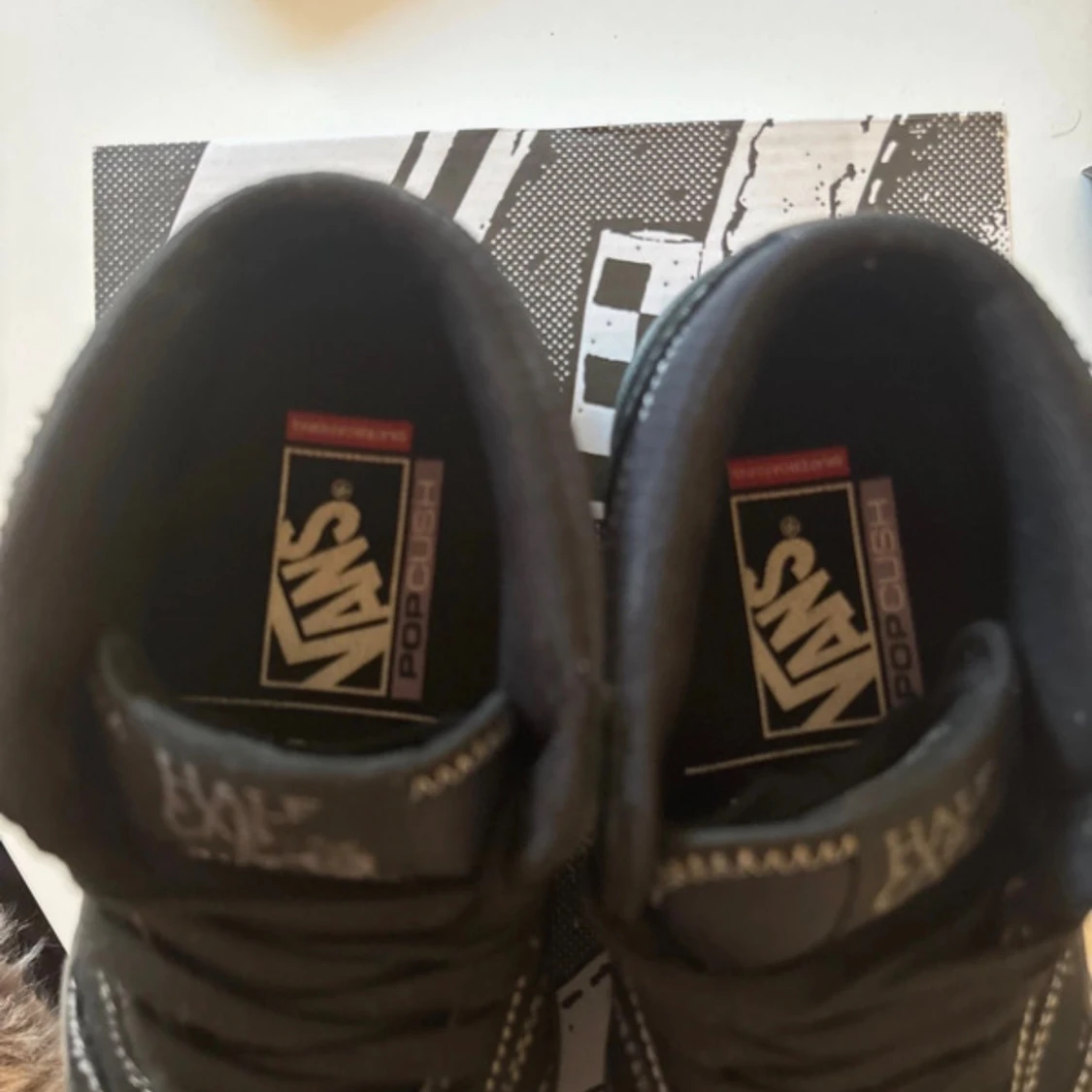 Svarta Vans Half Cab sneakers med PopCush innersula, klassisk vit kontrastsöm och gummisula. Jag har endast skejtat i dem en gång annars är det helt nya!