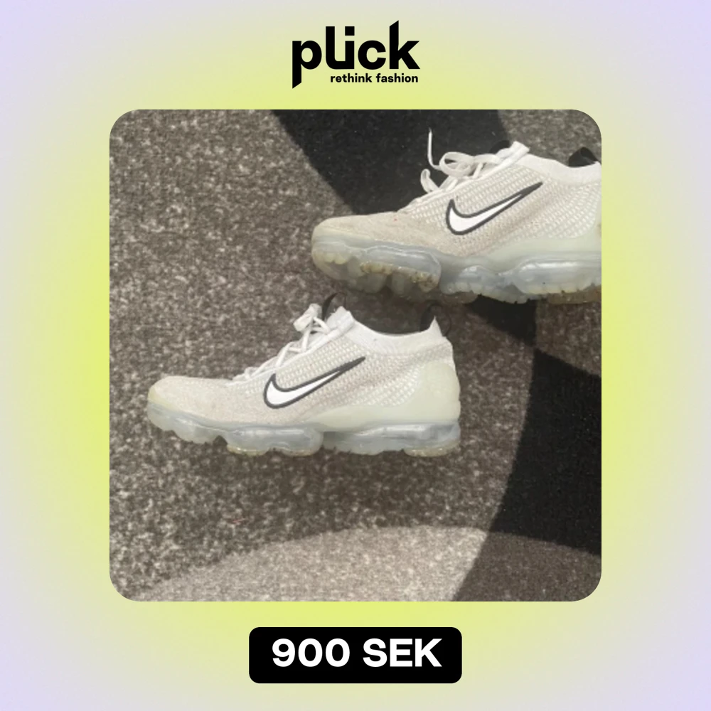 Hej, säljer nu dessa vita Nike vapormax flyknit eftersom att de har blivit för små. De är använda i max 2 månader och är i ett väldigt fint skick. Storlek 41. Priset kan diskuteras.