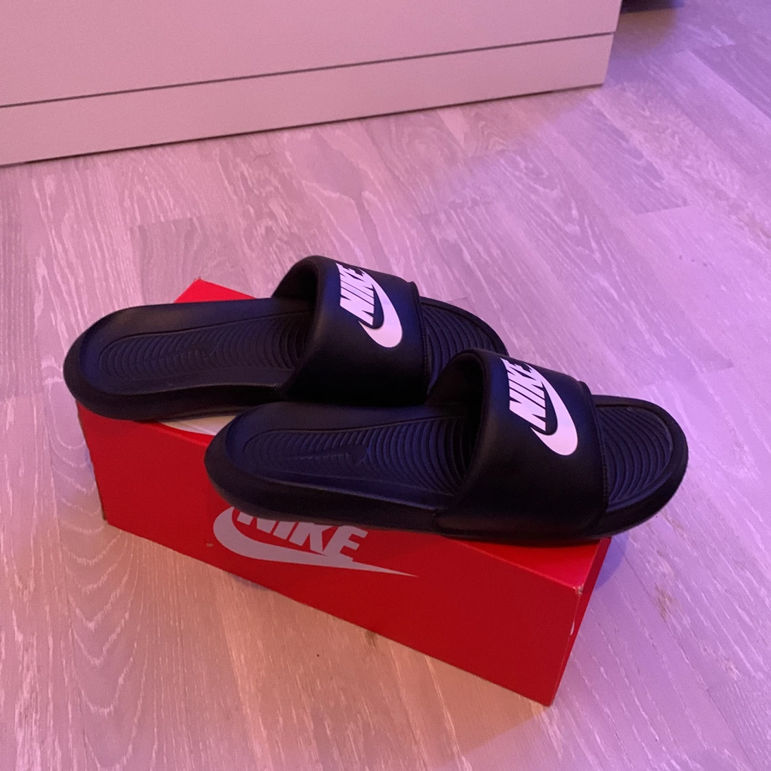 Ett par riktigt feta svart vita ONE SLIDE - Slip-ins från Nike, kommer med låda och kvitto