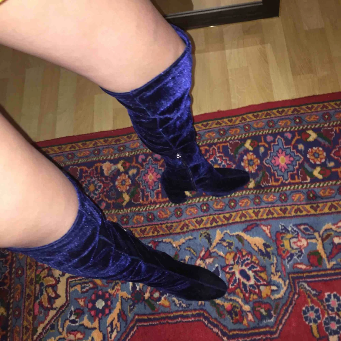 Mörkblå sammets boots från Nelly! Väldigt sköna och sitter på sin plats även fast dom är lite lösa. Säljer de pga att jag aldrig använder dem. De är använda en gång!