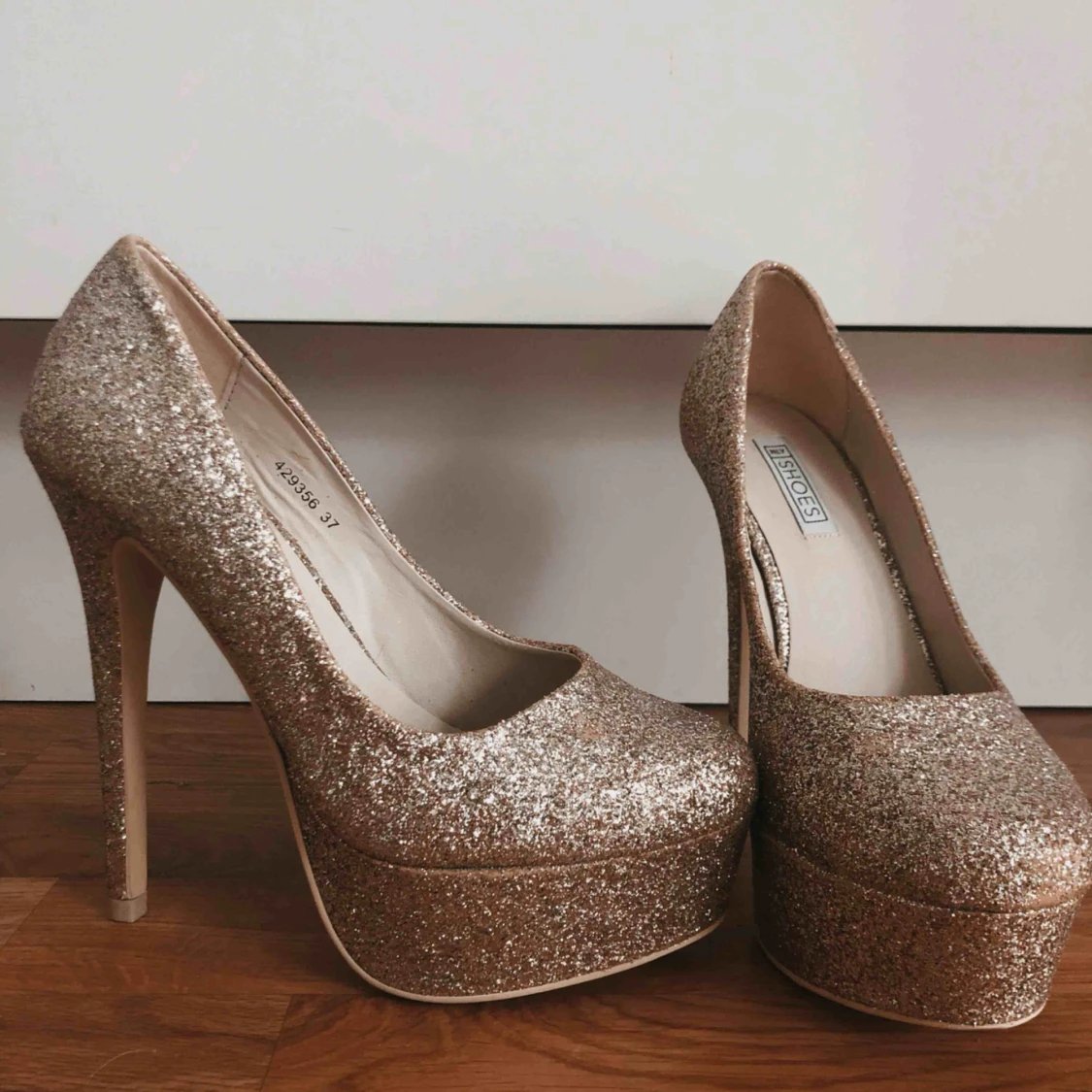 Glittriga platåklackar från NLY shoes. Aldrig använda. Klacken är 11 cm.