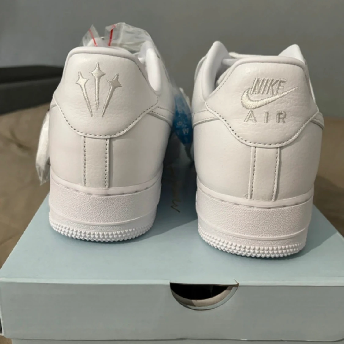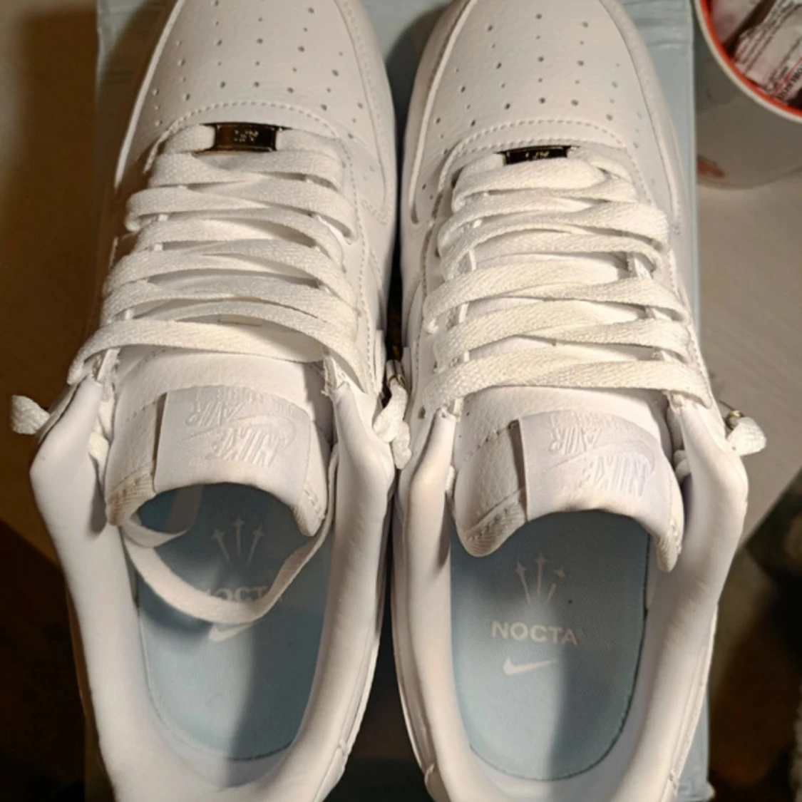 Säljer ett par oanvända nocta airforces i storlek 43 som passar perfekt nu till sommaren . öppen för diskutera pris, leverans inom 24h box och snören medföljer skickar även med ett par crease skydd vid snabb affär.