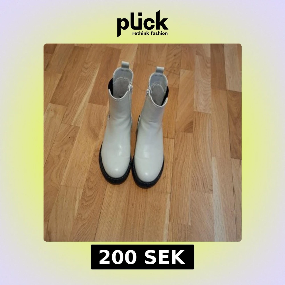 Snygga vita boots i skinn med dragkedja på sidan och svarta detaljer. Perfekta för en stilren look med en robust sula som ger bra grepp. De har en klassisk design som passar till många olika outfits.