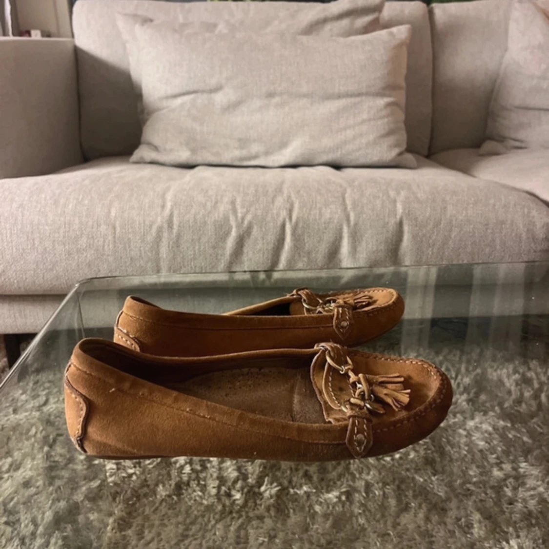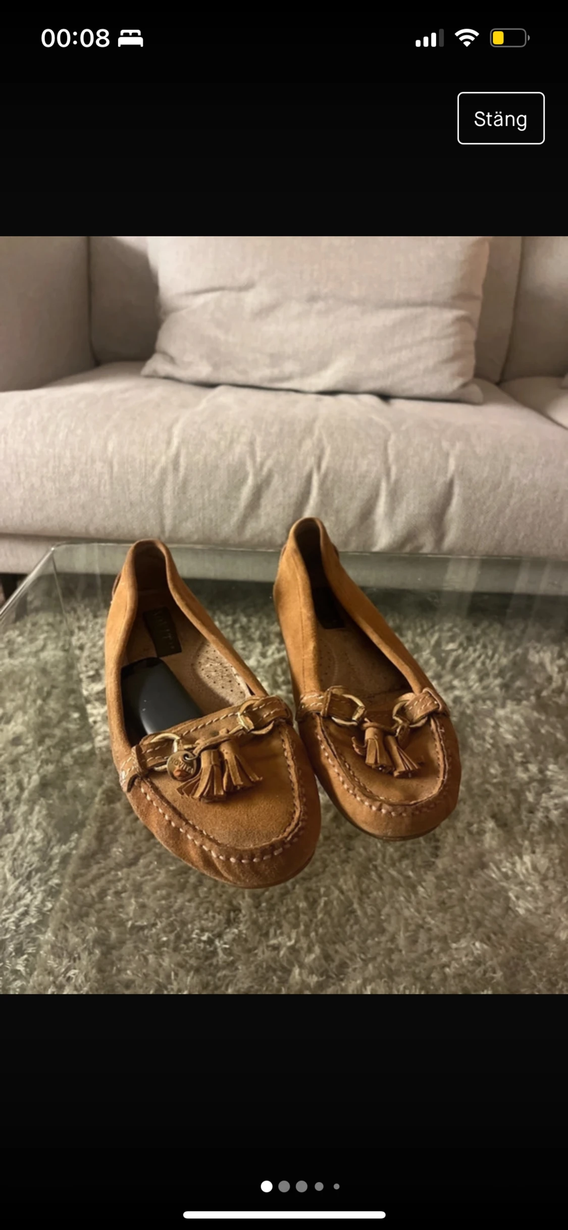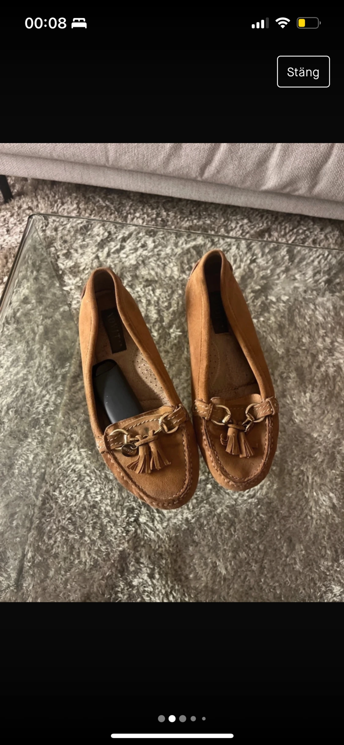 Bra skick, men använda. I rosa/brun mocka utan fläckar och inte slitet tyg. Strl 38