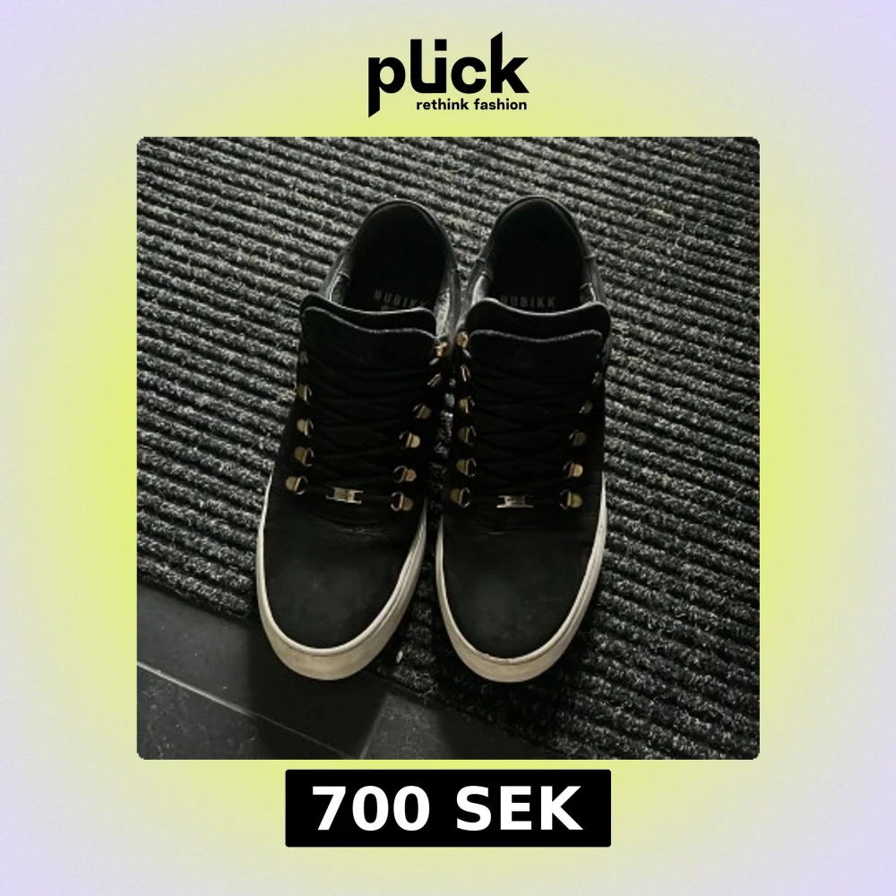 Svarta sneakers från Nubikk med snygga guldfärgade metalldetaljer vid snörningen och vit platt sula. Skorna har rund tå och är tillverkade i skinn med en stilren och modern look. Perfekta för dig som gillar streetstyle och vill ha något som sticker ut.