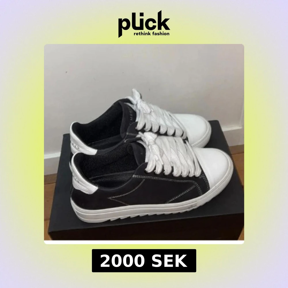 Snygga sneakers från Numeris med svart mocka på sidorna och vit skinn på tå och häl. Skorna har breda vita snören, vit platt sula och kontrasterande vita sömmar. Perfekt för dig som gillar stilrena och moderna sneakers med en cool vibe.