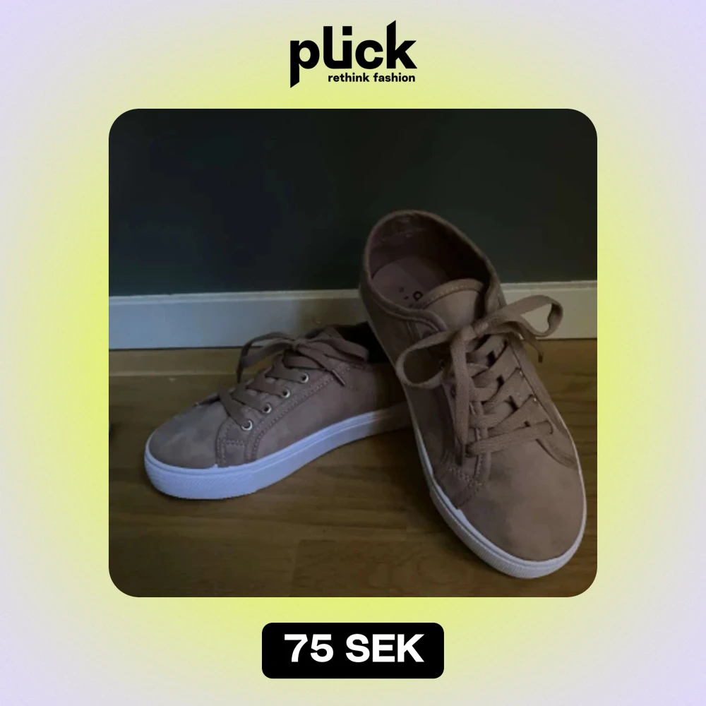Helt nya, aldrig använda skor i puderrosa/rosabeige mocka-liknande tyg. Storlek 37