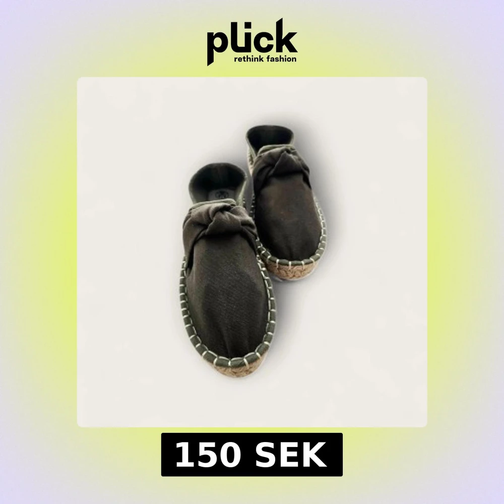 Oanvända och i toppskick! De här espadrillosen i olivgrönt är perfekta för våren och sommaren. Ovandel i canvas med en söt knutdetalj ger en stilren men avslappnad look. Handsydd kant i klassisk espadrillestil och platt gummisula gör dem både snygga och bekväma – funkar lika bra på semestern som till vardags i stan. Lätta, luftiga och enkla att matcha. Skick: Nya utan originaltag. Aldrig använda. Inga synliga skador eller märken.