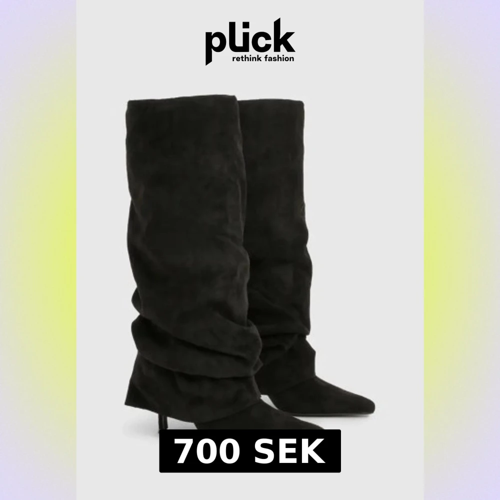 Svarta höga stövlar med spetsig tå. Använd en gång och aldrig ute! Är i original förpackning, med klistermärken på botten. Om snabb förhandling skickar jag på måndag d. 15. Storlek 40 men små i storleken och passar 39 och jag skulle även säga 38. Ny pris: 1017kr (pris kan diskuteras)