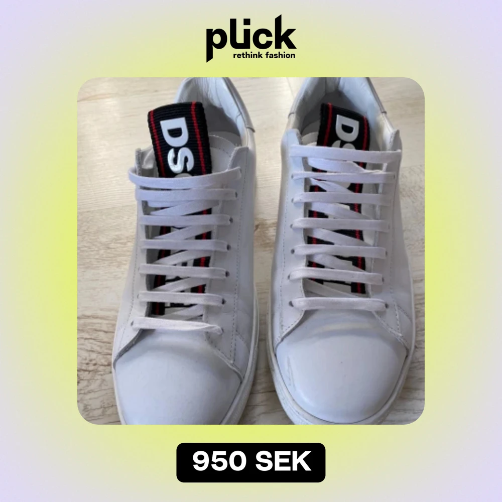 Vita fräscha sneakers från Dsquared2. Använda ett fåtal gånger. Anledningen till försäljning är att skon inte passar mina fötter. Strl 43