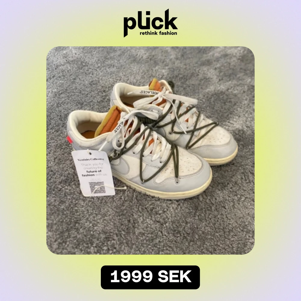 Tjena! Säljer ett par off white dunk skor i serie numret 22/50. Skorna har använts en del. Jag köpte de via vesitarie Collective och gjorde en legit check på skorna, så skorna är 100% autentiska. Bevis finns. Taggen har försvunnit därav är priset 1790kr. Mvh
