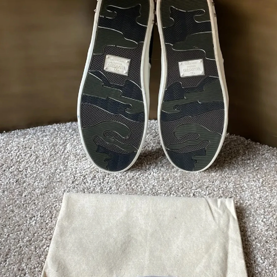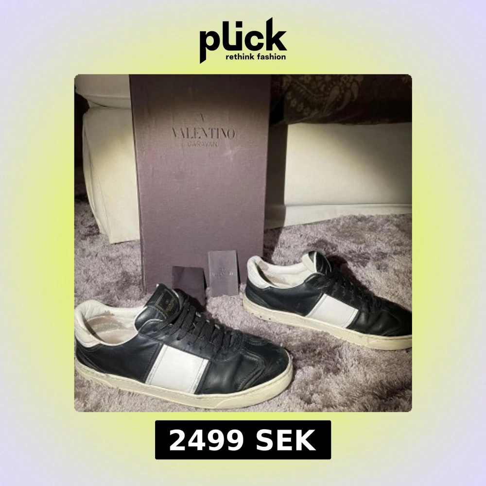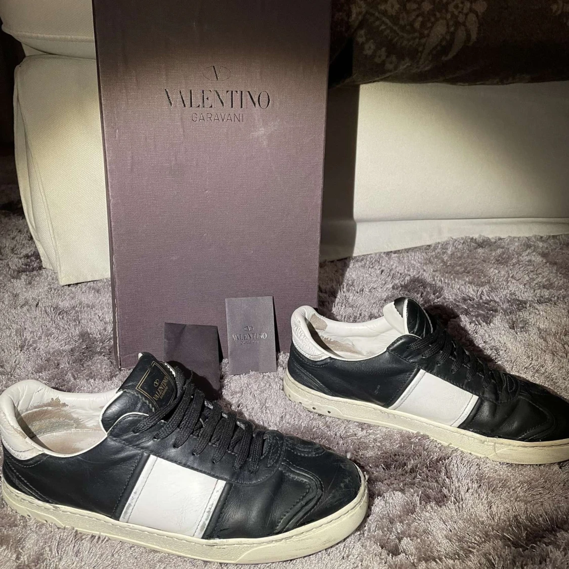 Snygga svarta sneakers med vita detaljer från Valentino. Skorna görs inte längre och nypris är runt 7999kr, mitt pris 2499kr, hör av er vid frågor och funderingar ‼️👍Box och allt og med ‼️‼️
