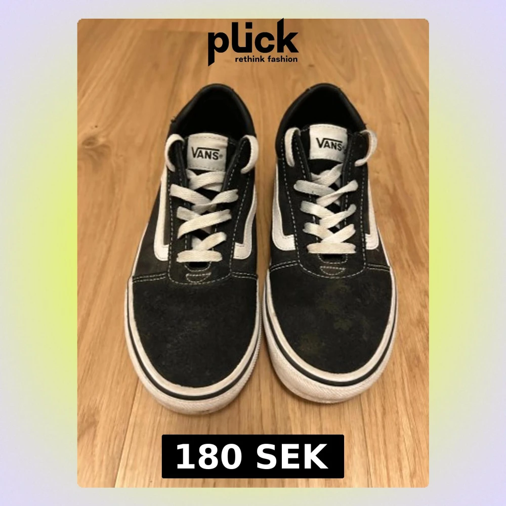 Klassiska Vans Old Skool sneakers i svart mocka och canvas med vit sidorand och vita snören. Skorna har en platt gummisula med det ikoniska rutmönstret undertill och rund tå. Perfekta för dig som gillar streetstyle och skatekänsla.