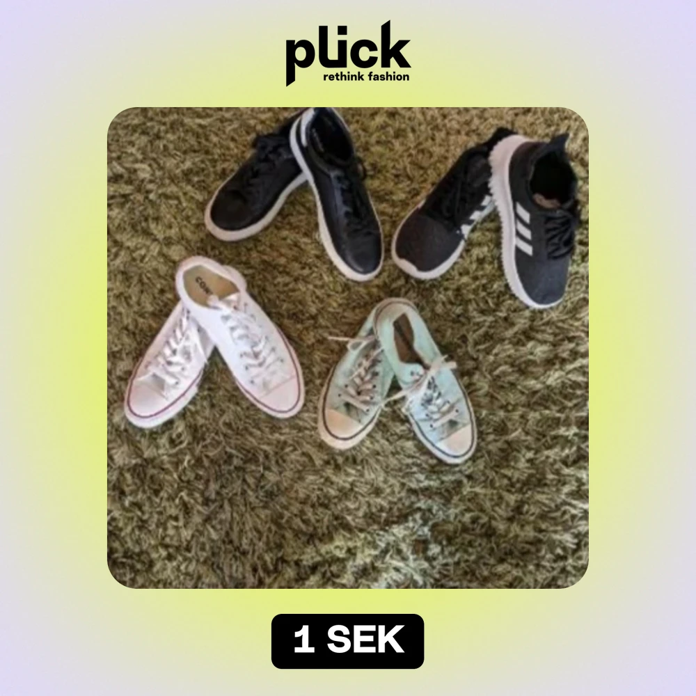 Converse (vita), 39,5, mycket bra skick, 600 kr Converse (mintgröna), 37, 300 kr Björn borg, 39, gott skick , 500 kr Adidas, 38, oanvända, 450 kr