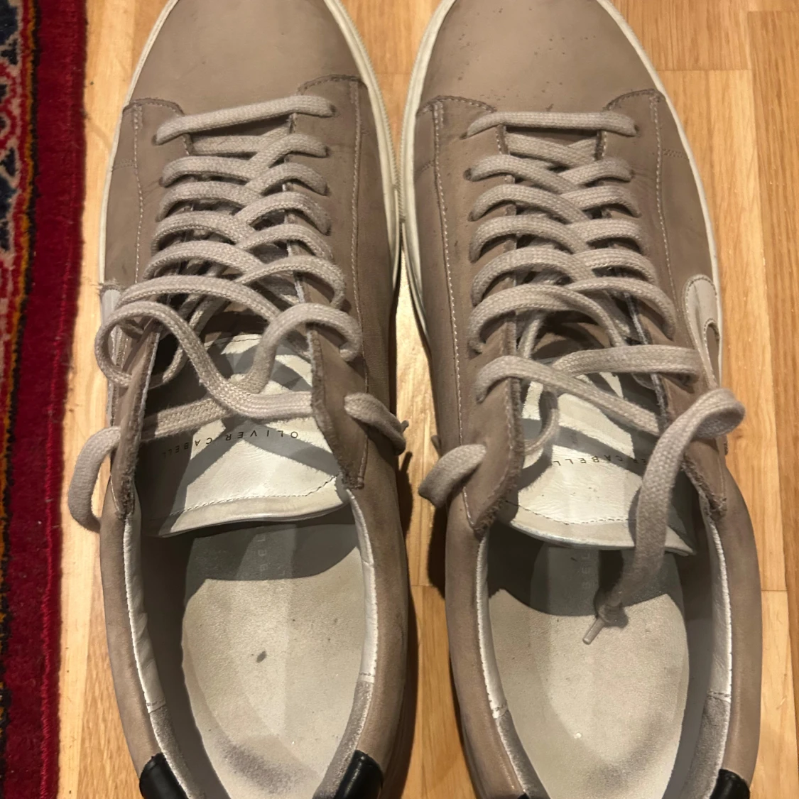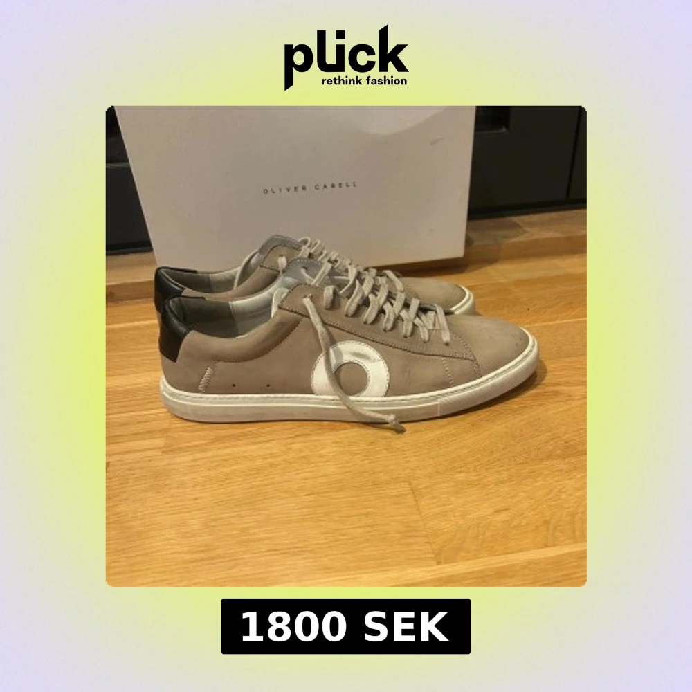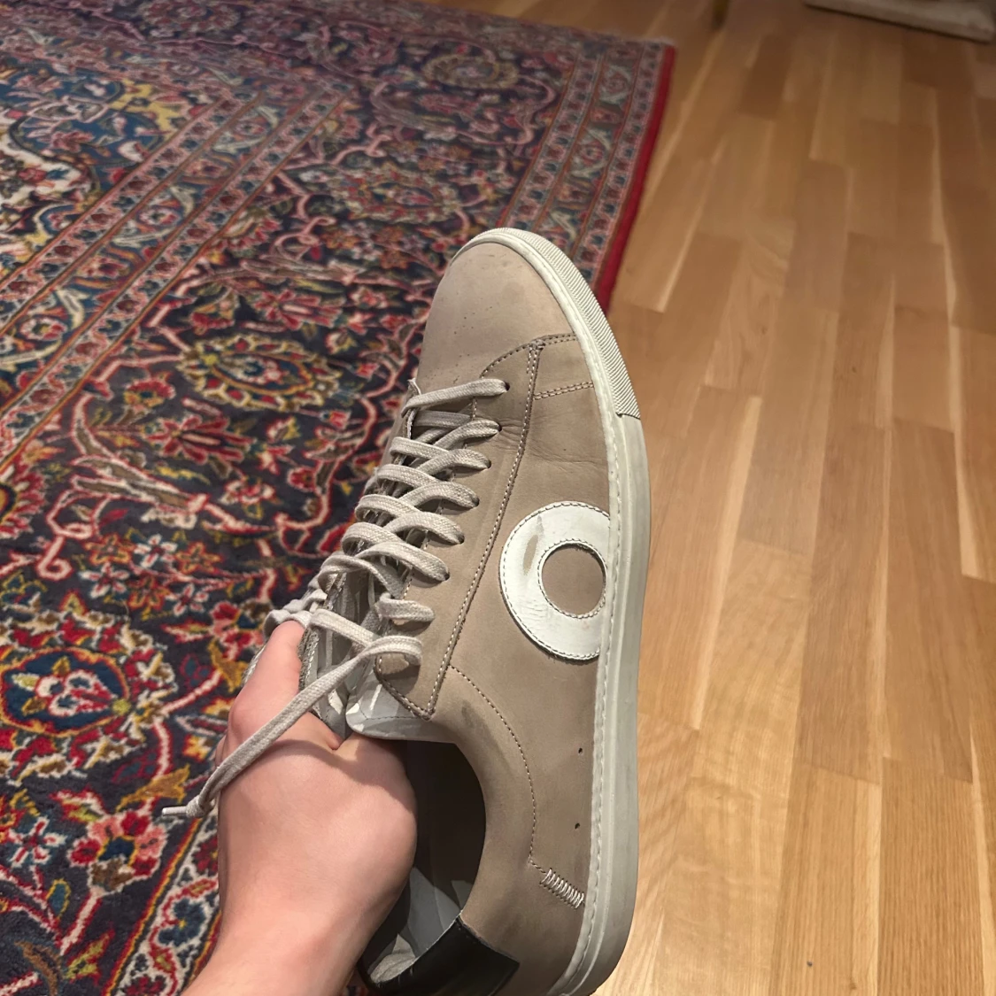 Snygga sneakers från Oliver Cabell i beige mocka med vit rund detalj på sidan och svart häl. Skorna har snörning, platt vit sula och rund tå. Perfekt för dig som gillar stilrena och moderna sneakers med en unik touch. Skick 8,9/10