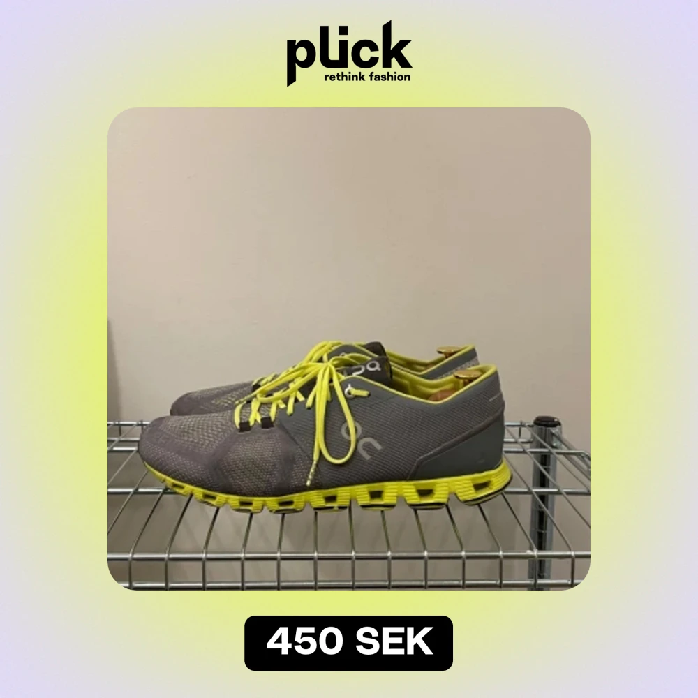 Grå/neon färgade träningsskor ifrån ON Running Cloud. Använda med lite slitage i hälen annars i mycket fint skick.