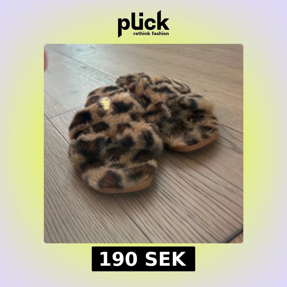 Supermjuka sandaler med leopardmönster och öppen tå. De har en fluffig pälsimitation i leopard. Oanvända!