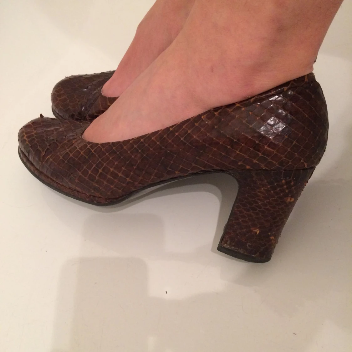 Äkta ormskinn skor! 6 cm klack. Jätte fina till uppvikta jeans. Frakt eller upphämtning