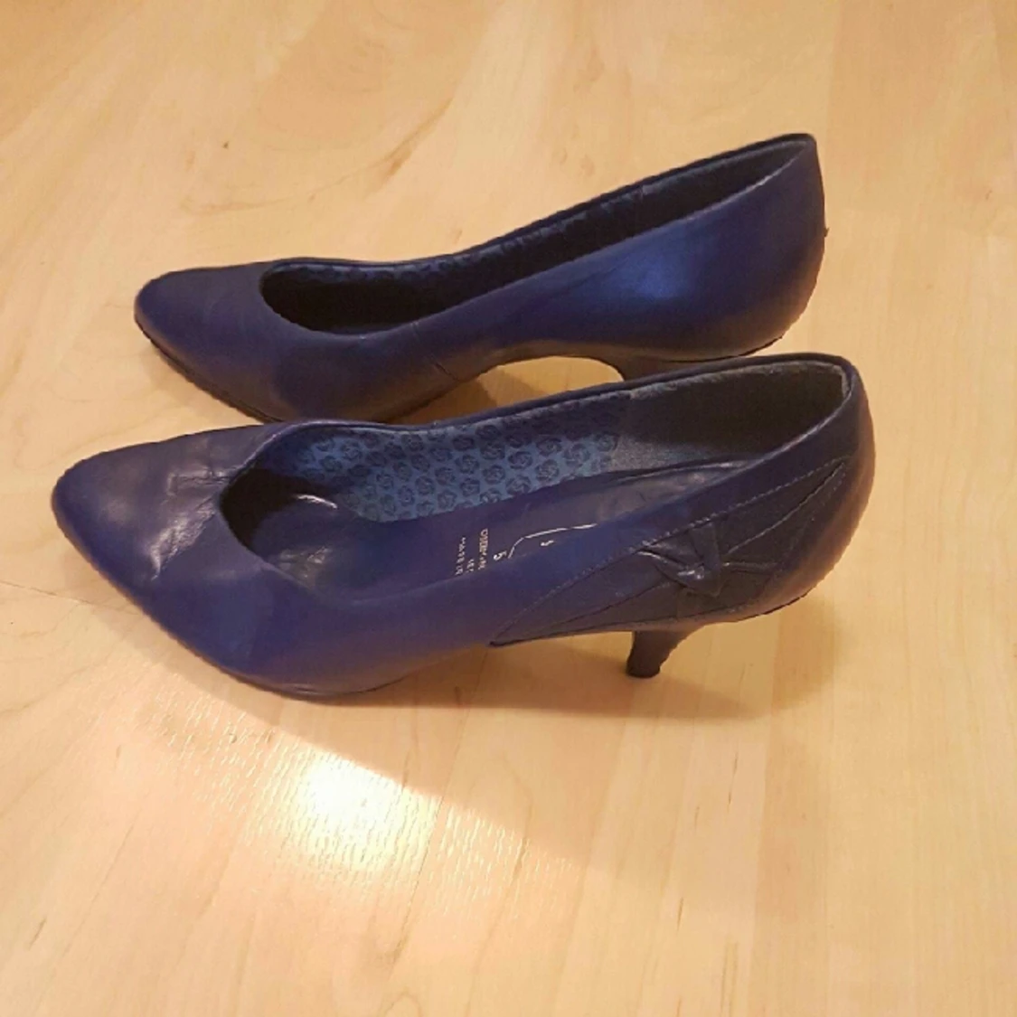Superfina blåa 60-tals skor, sparsamt använda. 5 1/2 -motsvarar storlek 38. Äkta läder, mkt bra kvalité!