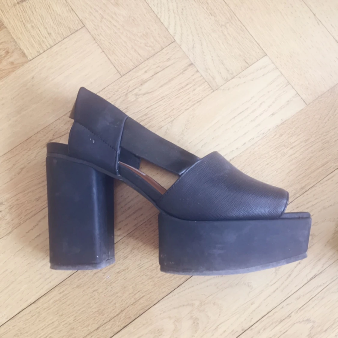 Superfina skor köpta här för någon månad sen. Använda två ggr men tyväääärr lite för små för mig. Stabila klackar som känns rätt till varje tillfälle. 💫