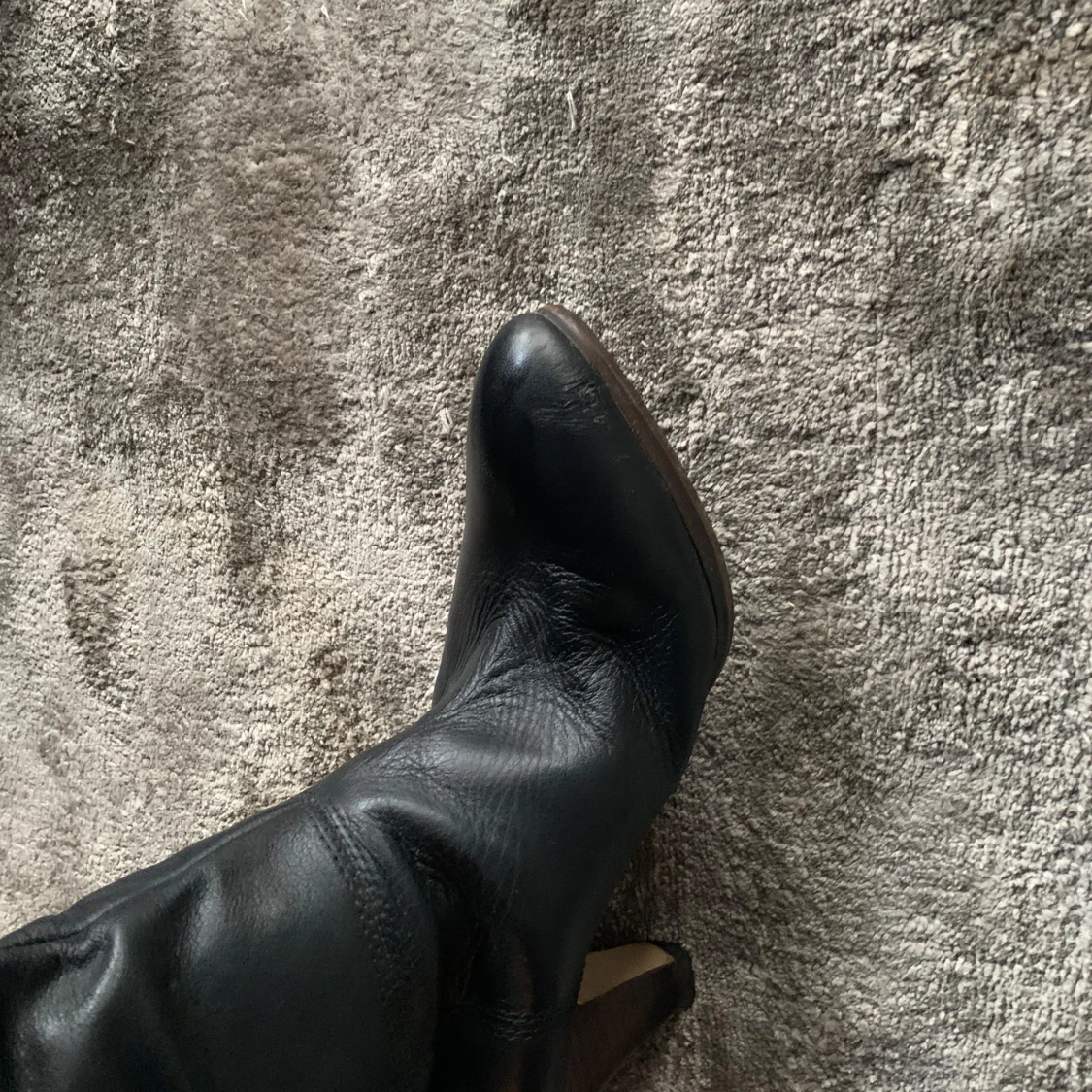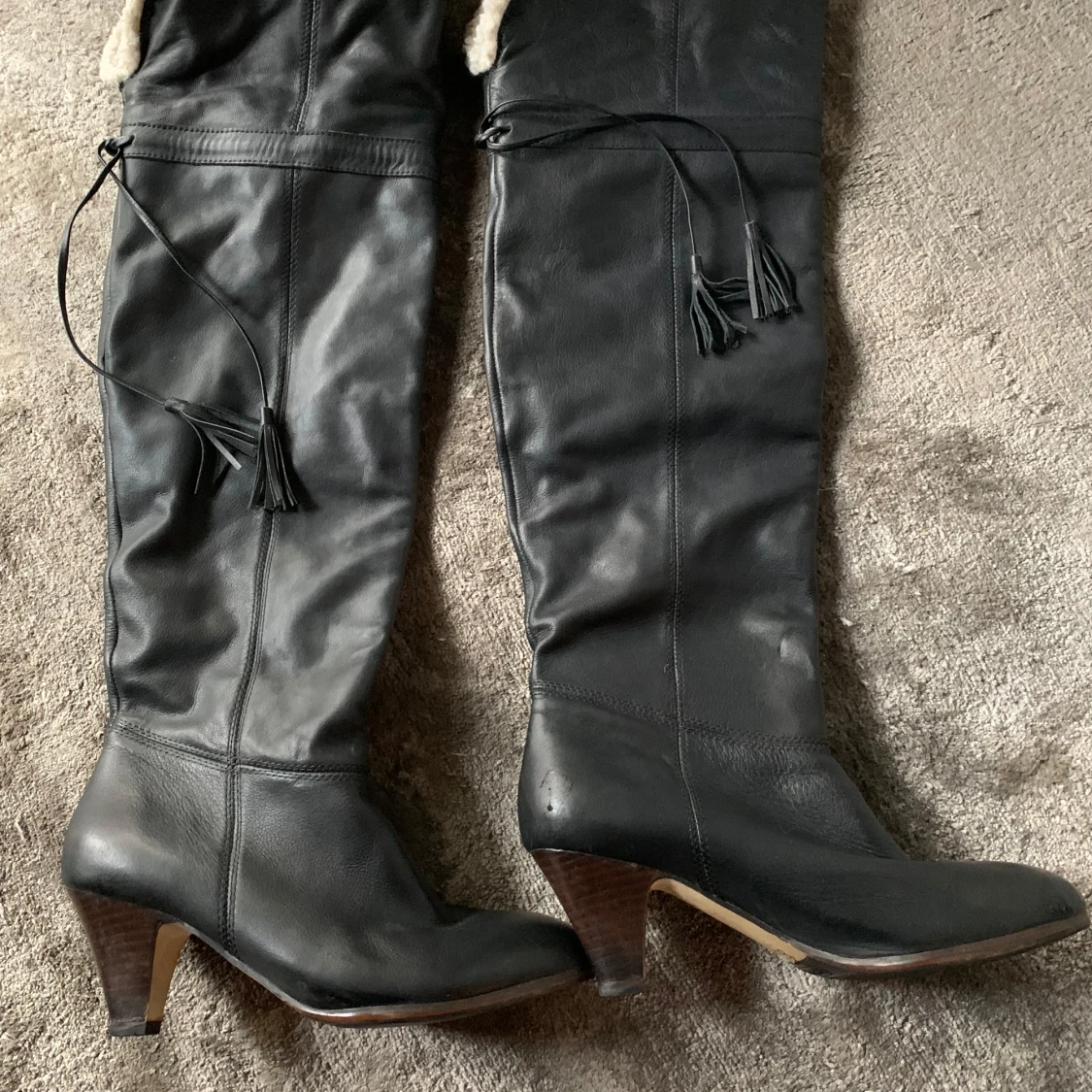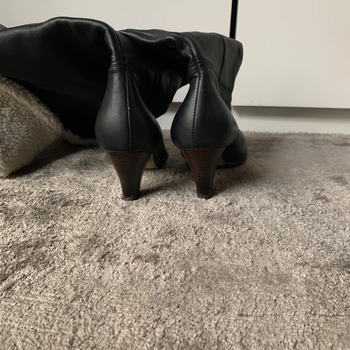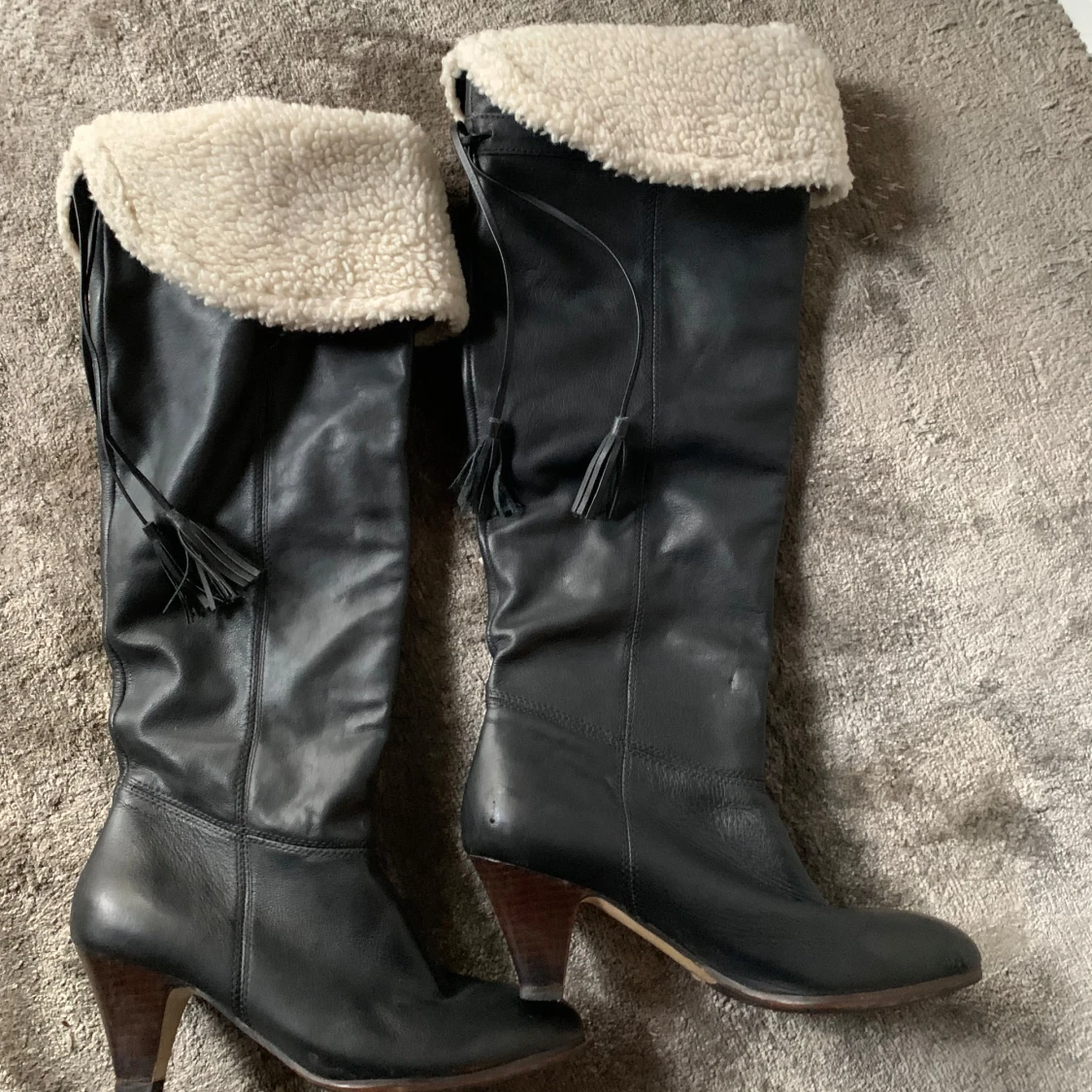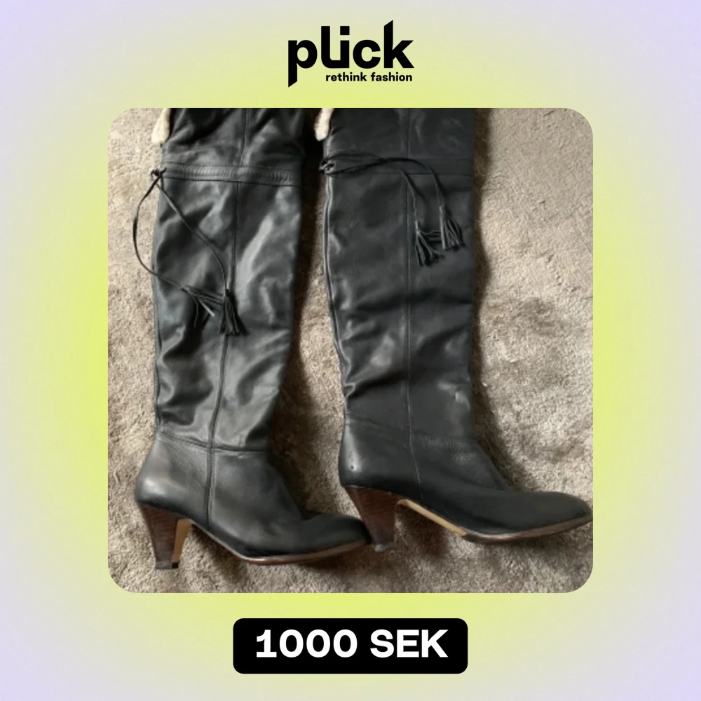 En mjuk läder stövel som går över knät eller så viker man ner skaftet. Behaglig klack att gå i