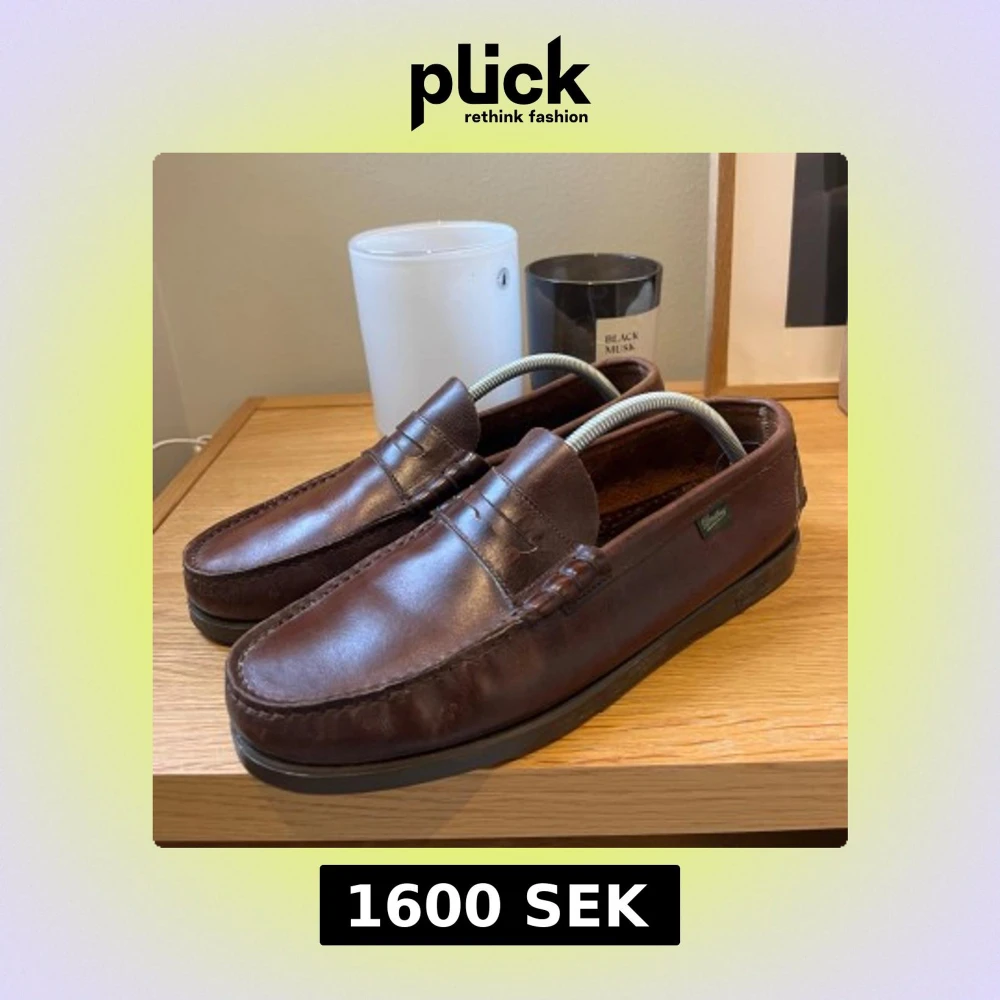 Snygga bruna loafers från Paraboot i skinn. Klassisk design med rund tå och diskret söm längs ovansidan. Perfekta för en stilren look.