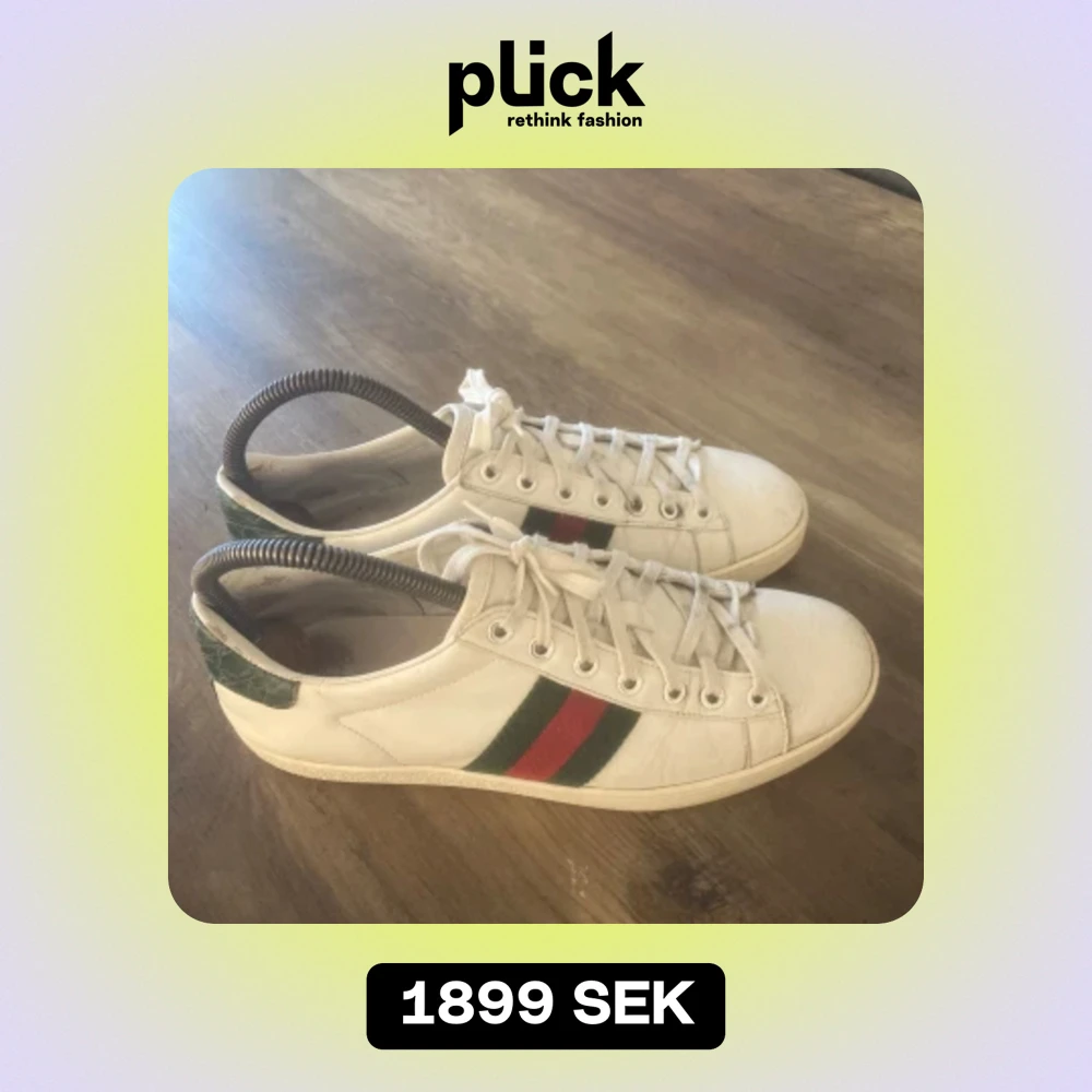 Hej, säljer dessa jätte fina Gucci ace skor i storlek 38 men passar 39 fint grön/röda inget og följer med tyvär skick 7,5/10 mycket liv kvar i skorna dm vid funderingar och andra frågar!