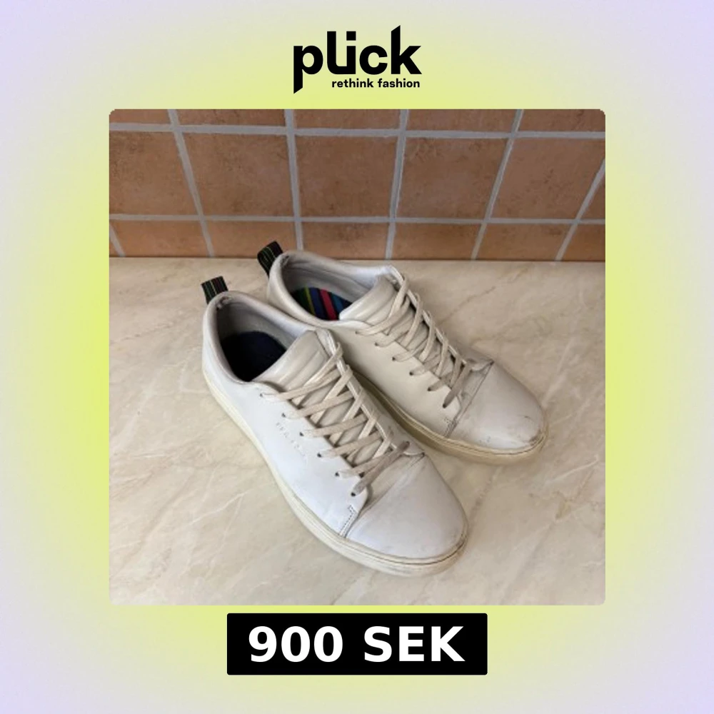 Säljer ett par vita paul smith sneakers i storlek 42. Dom är i bra skick men några märken men mycket liv kvar.
