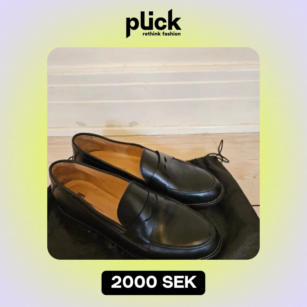 I svart läder, från Hope och i strl 41. Använda utomhus en gång. Har fått en gummisula från Vibram utanpå lädersulan, vilket kostade 500 kr hos skomakaren. Normala i passformen. Nypris knappt 4000 kr.