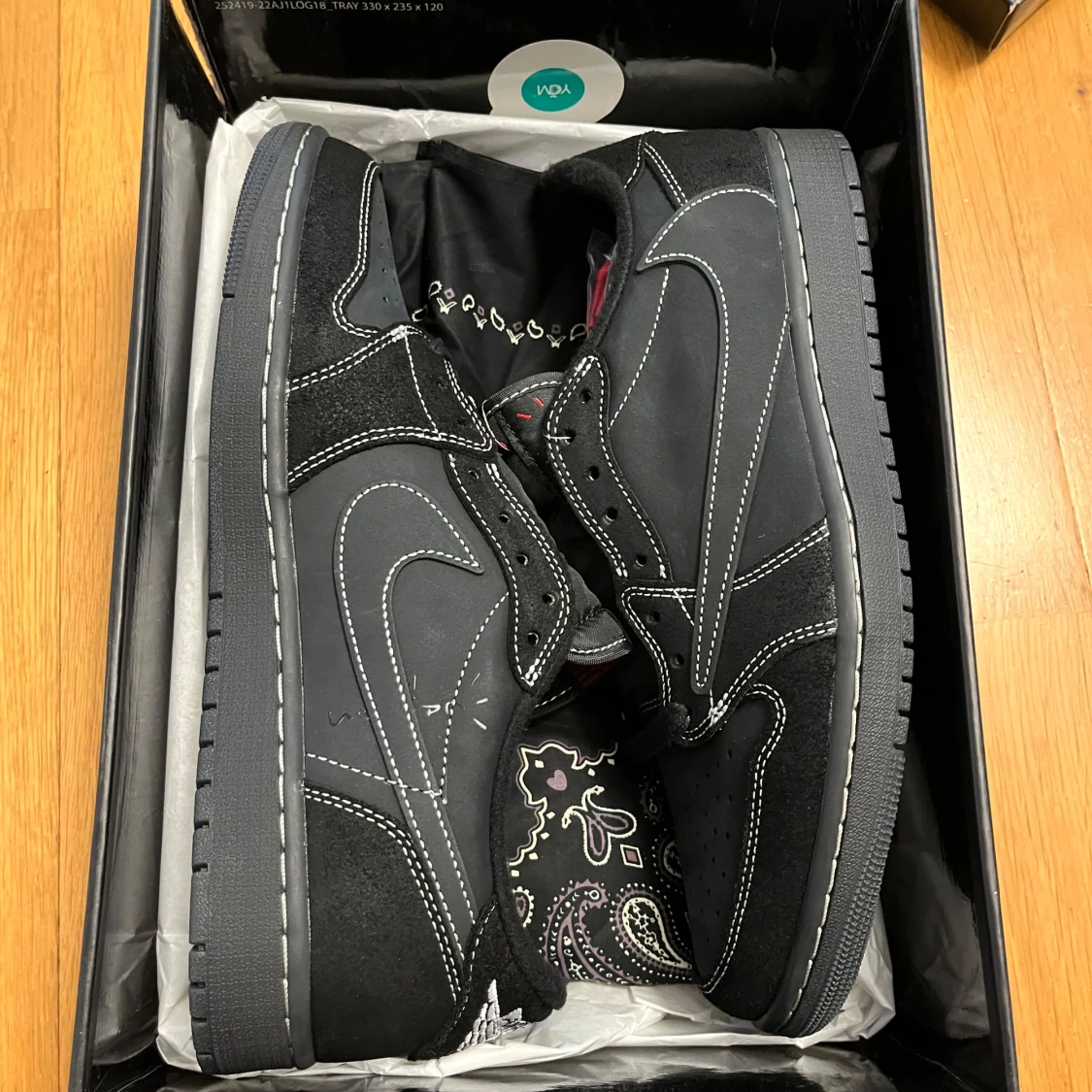Travis Scott Jordan 1 low phantom storlek 45 använd en gång och allt ingår.